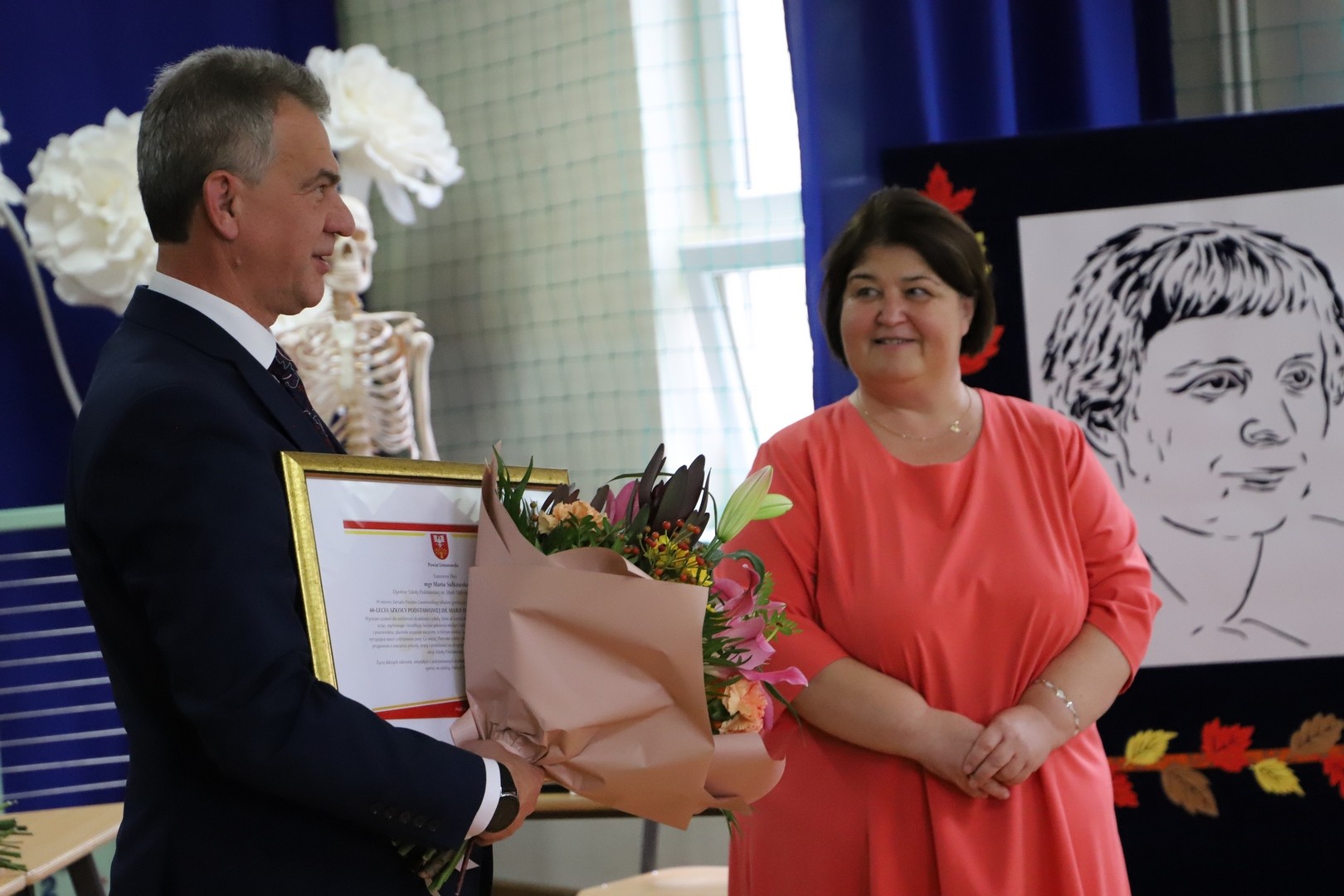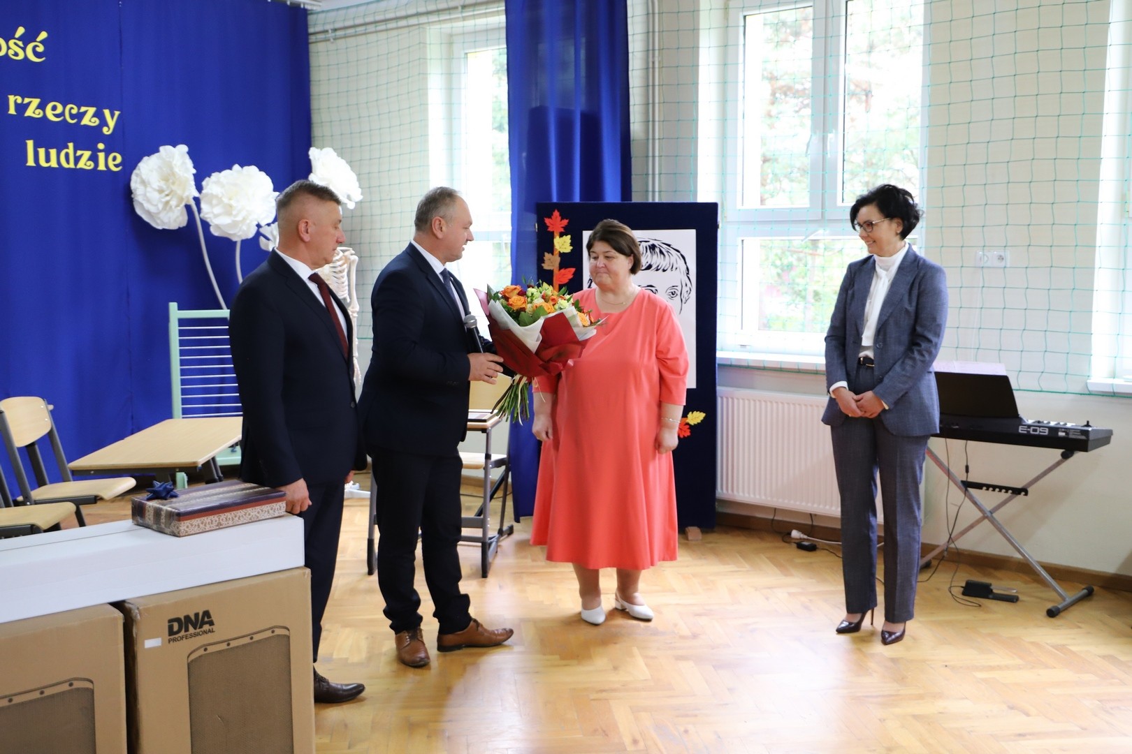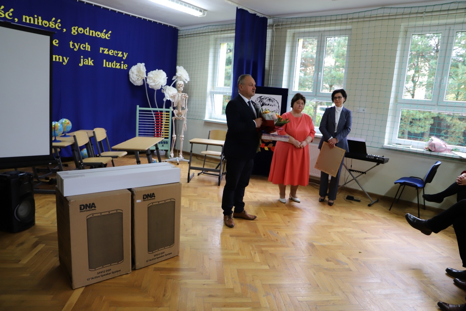 Wójt Gminy Limanowa Jan Skrzekut, w imieniu władz samorządowych, uroczyście wręczył na ręce dyrektor szkoły