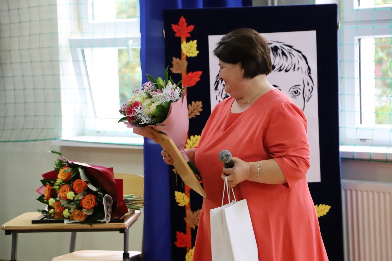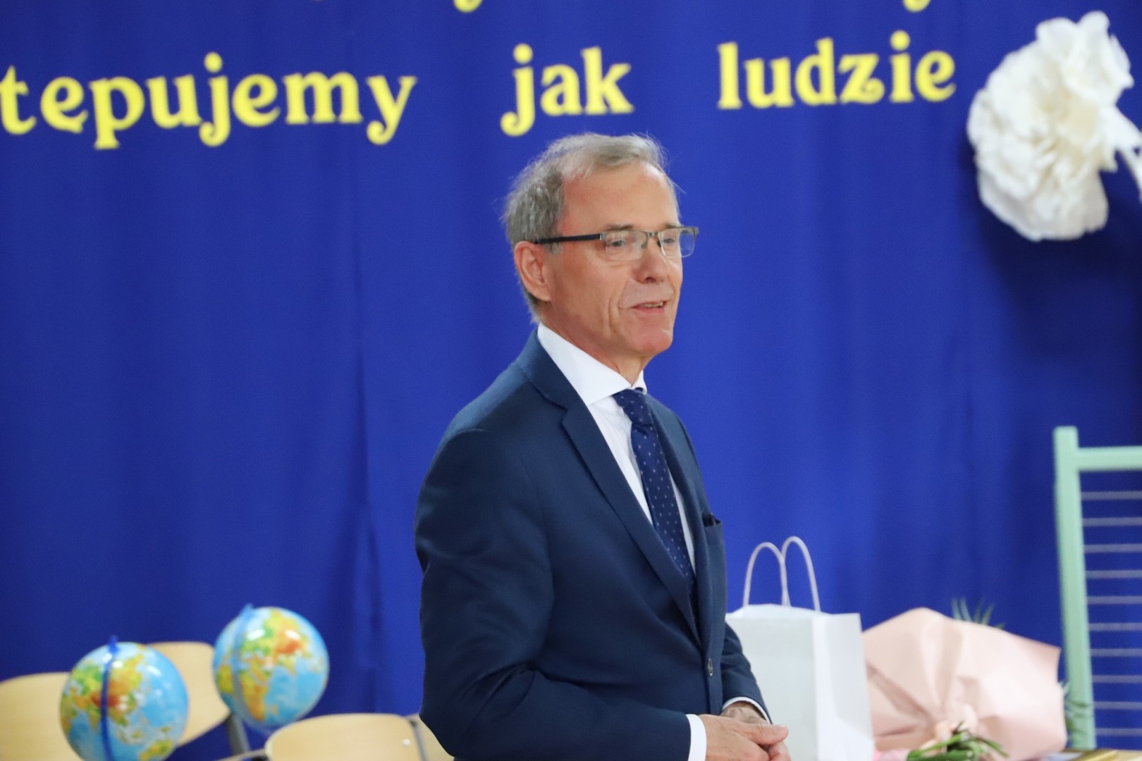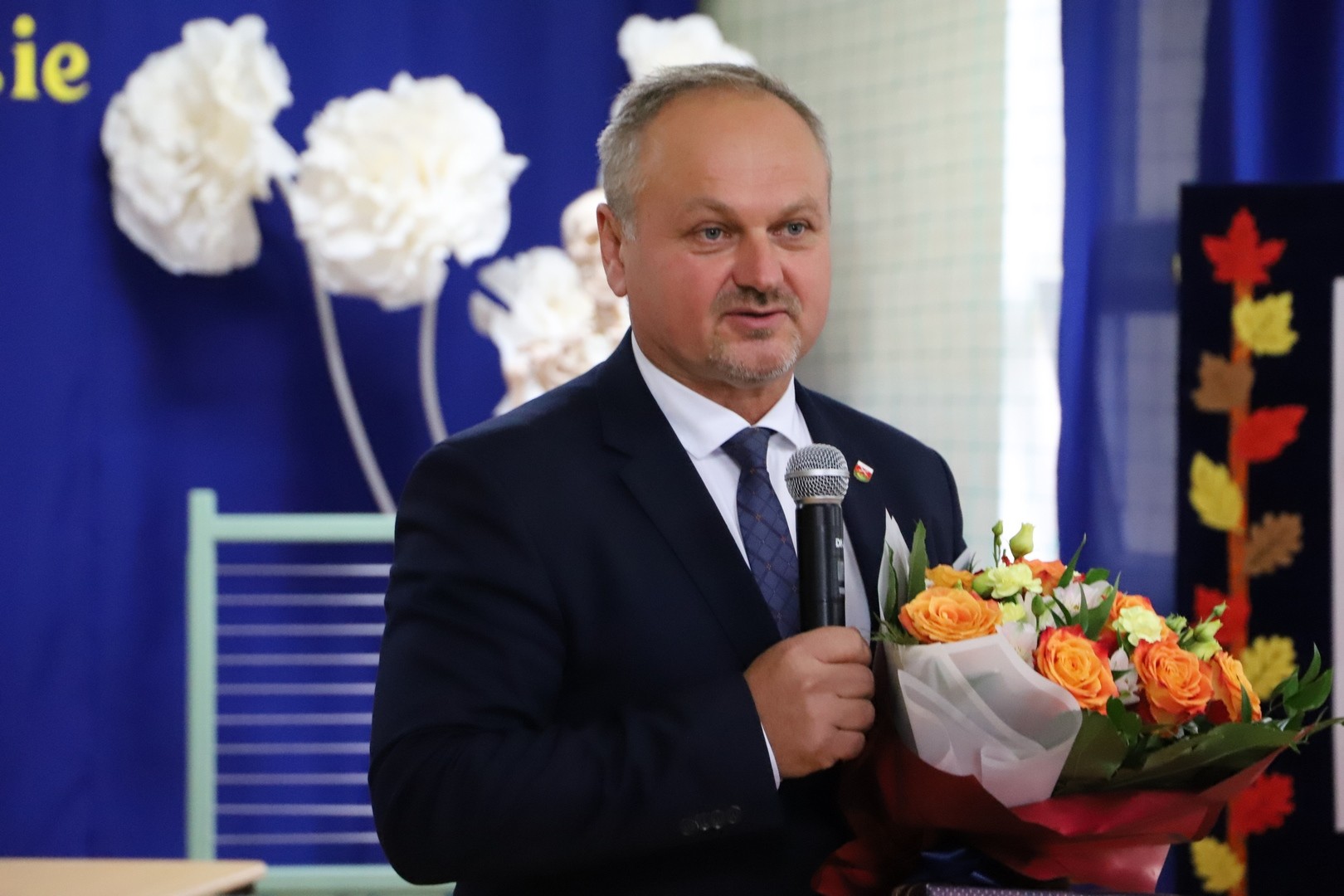 Wójt Gminy Limanowa Jan Skrzekut, w imieniu władz samorządowych, uroczyście wręczył na ręce dyrektor szkoły
