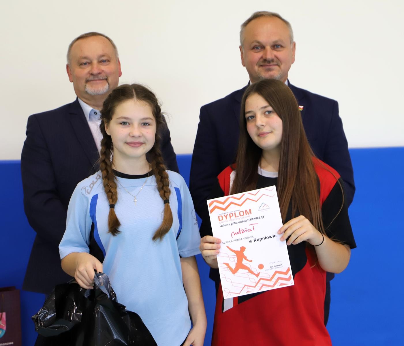 Wręczenia dyplomów oraz nagród uczestnikom rozgrywek piłkarskich dokonali, Jan Skrzekut Wójt Gminy Limanowa oraz dyrektor Szkoły Podstawowej nr 1 w Męcinie Grzegorz Krzak.
