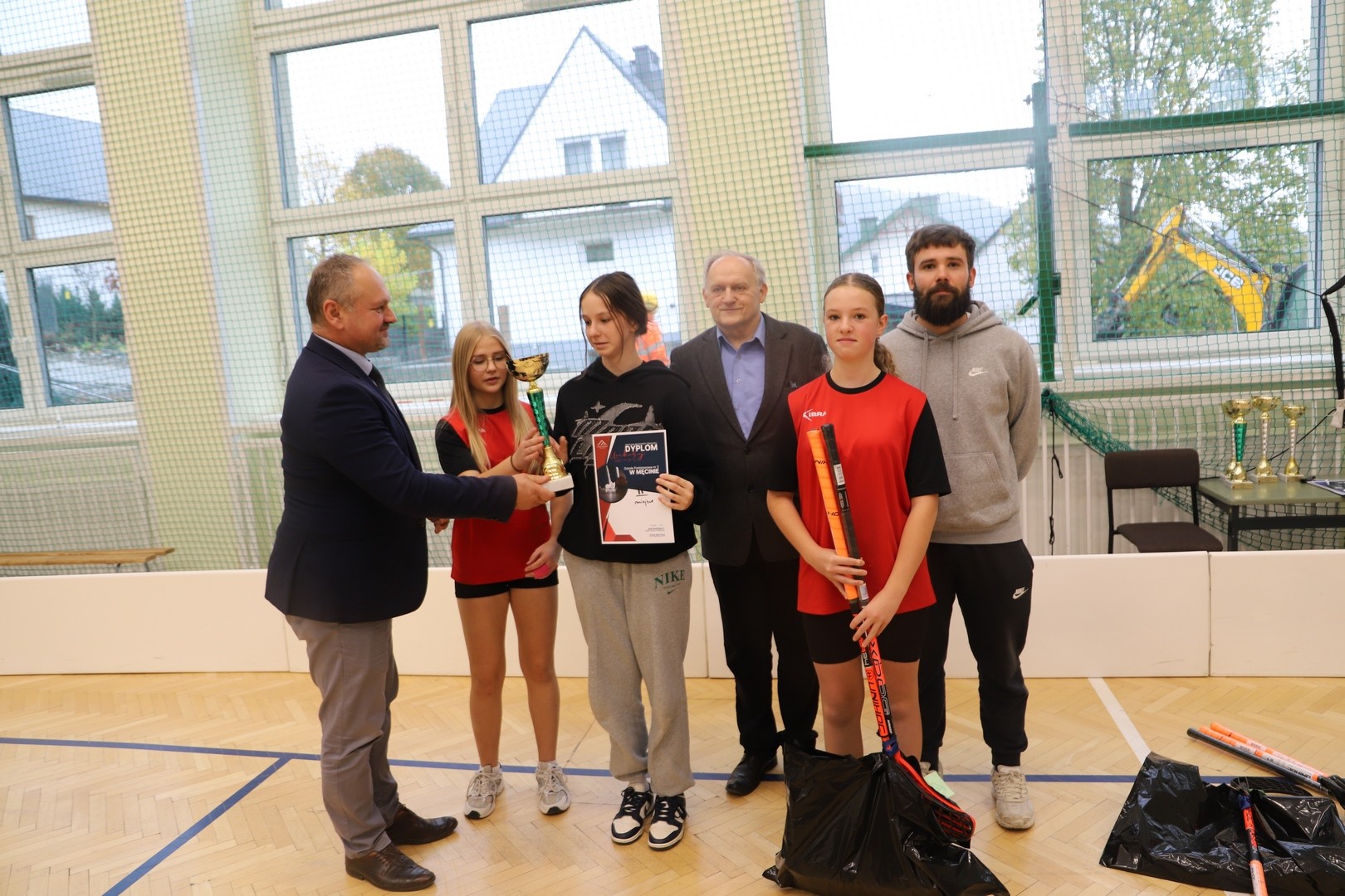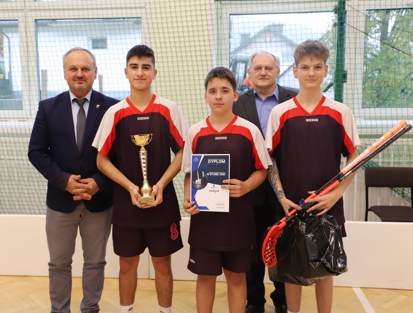 Wręczenia dyplomów oraz pucharów uczestnikom rozgrywek piłkarskich dokonali, Jan Skrzekut – Wójt Gminy Limanowa oraz Dyrektor Szkoły Podstawowej nr 2 w Starej Wsi – Marek Twaróg.