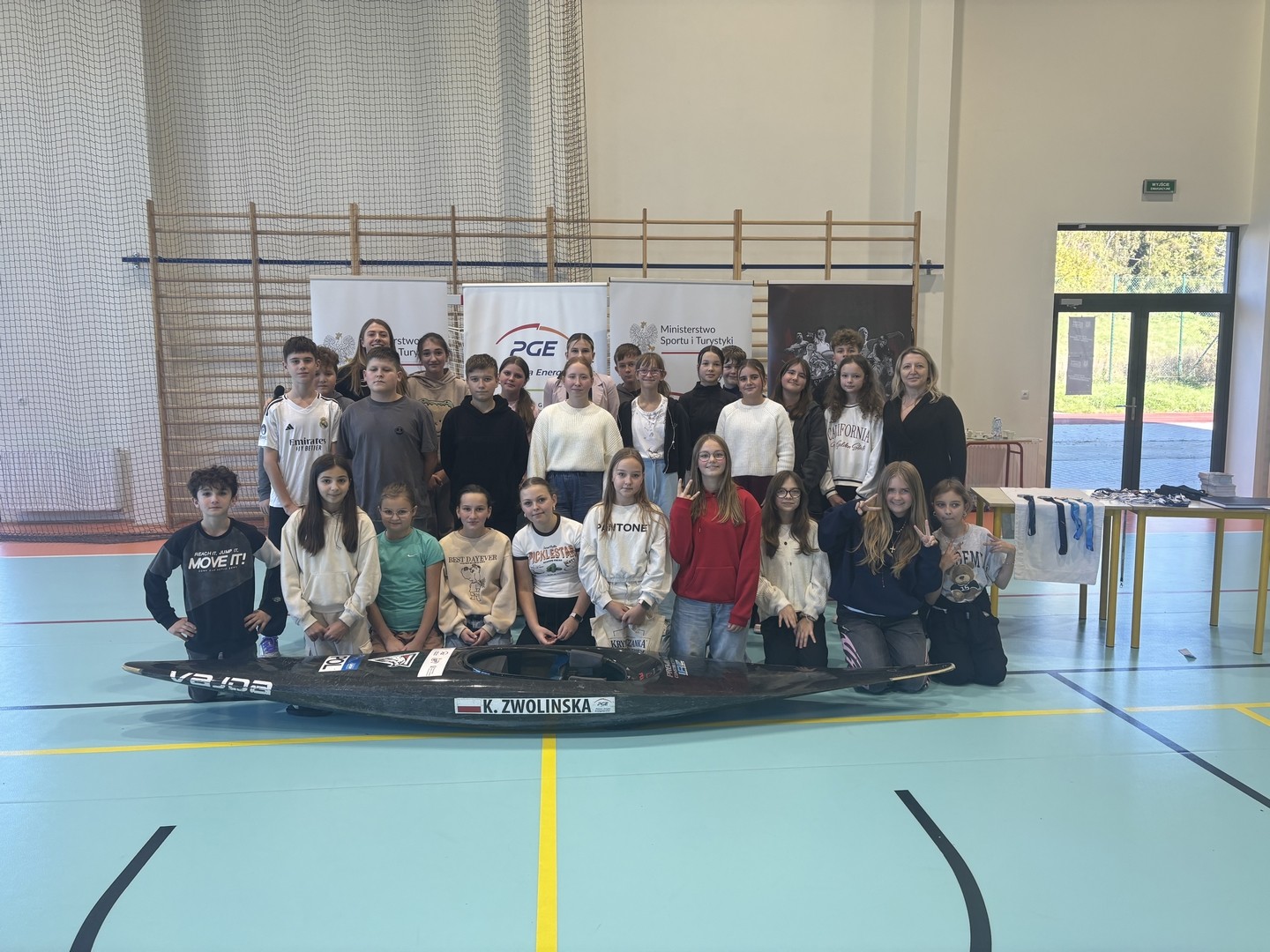 Wizyta Klaudii Zwolińskiej na długo pozostanie w pamięci całej szkolnej społeczności. Dziękujemy za inspirującą lekcję sportu, motywacji i wiary w siebie, i życzymy by każda kolejna rzeka prowadziła do nowych zwycięstw – zarówno na torze, jak i w życiu!