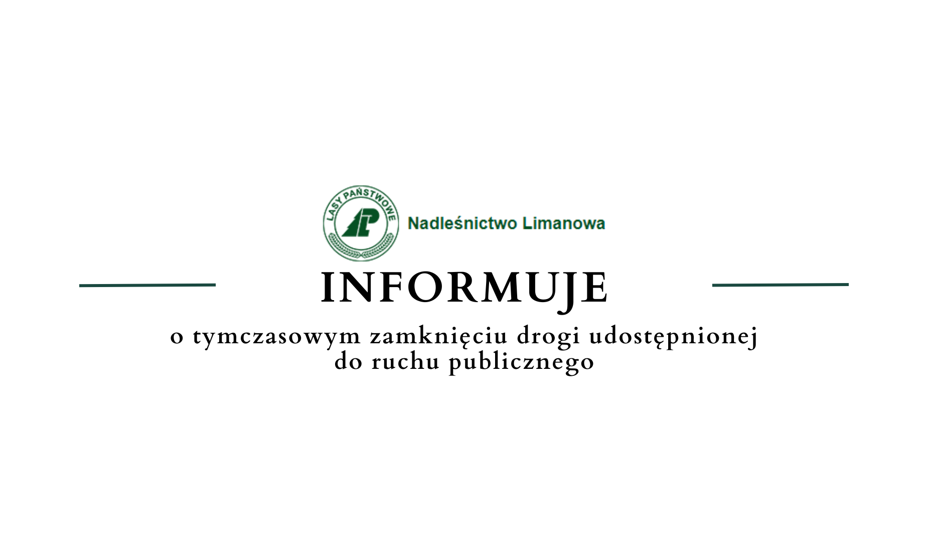 Nadleśnictwo Limanowa informuje, że na podstawie §7 Regulaminu korzystania z leśnych dróg udostępnionych do ruchu publicznego dla pojazdów silnikowych, zaprzęgowych i motorowerów na terenie Nadleśnictwa Limanowa, stanowiącego załącznik nr 1 do Zarządzenia nr 20/2021 Nadleśniczego Nadleśnictwa Limanowa z dnia 24.08.2021 r.,