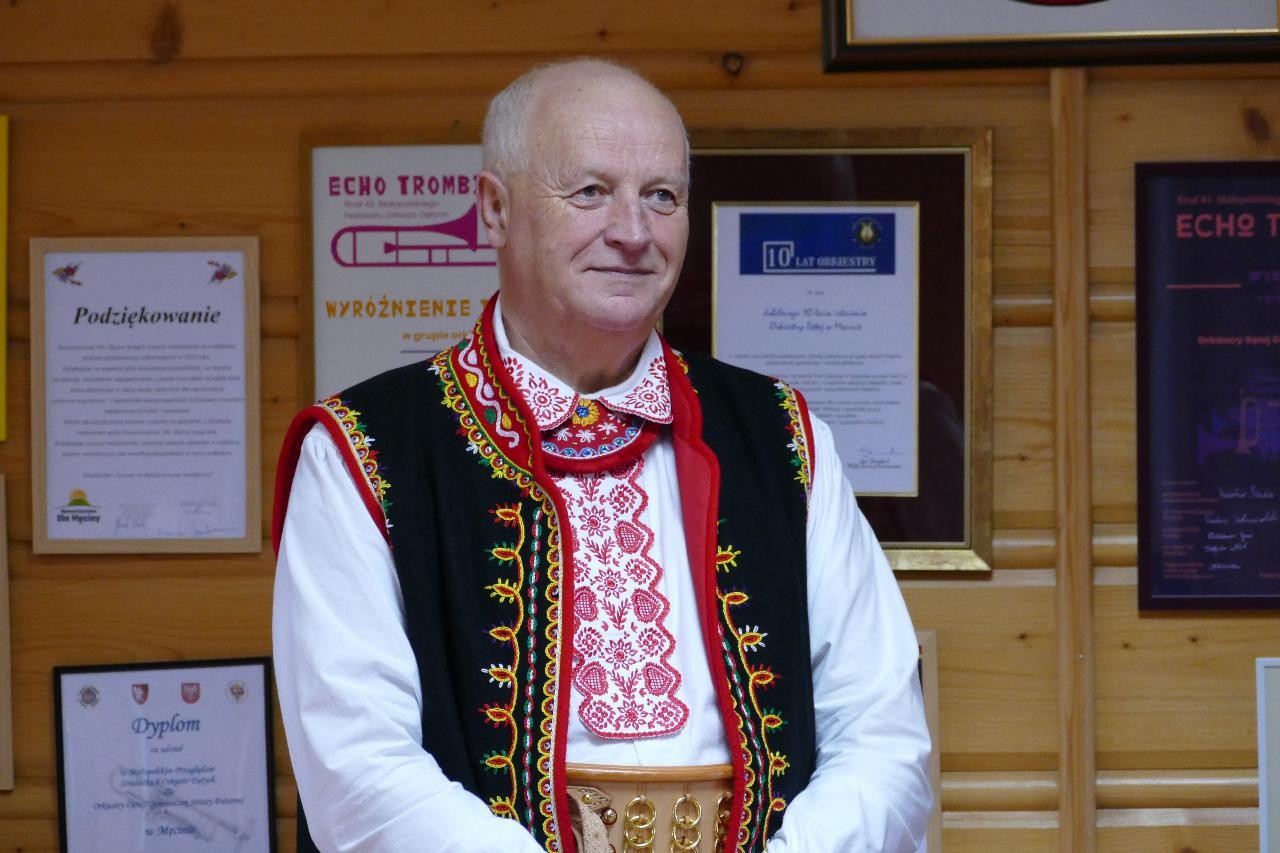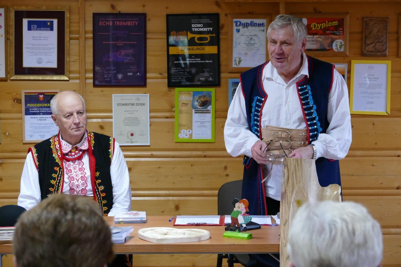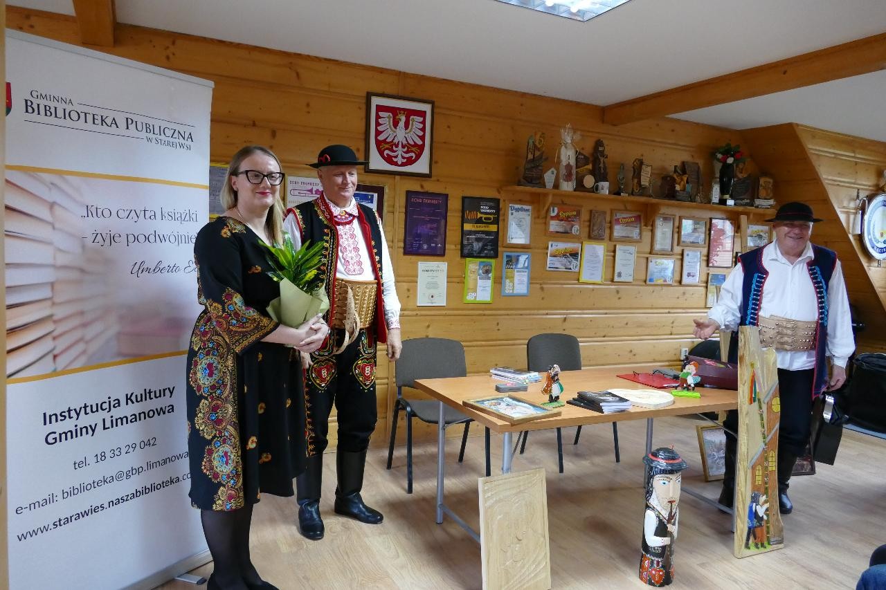 Spotkanie otworzył dyrektor biblioteki, Jacenty Musiał, który jednocześnie pełnił rolę moderatora wydarzenia. Już od pierwszych chwil wprowadził zebranych w serdeczny, pogodny nastrój, witając gości oraz zapowiadając bohatera wieczoru. Zarówno dyrektor, jak i Krzysztof Kunicki zaprezentowali się w tradycyjnych, profesjonalnych strojach lachowskich, co nadało spotkaniu wyjątkowy, regionalny charakter i podkreśliło jego tematykę.