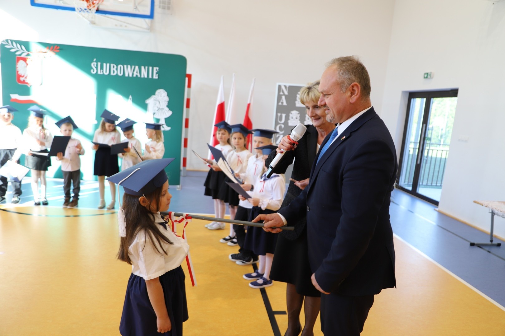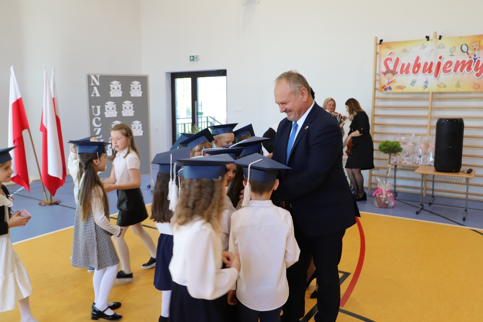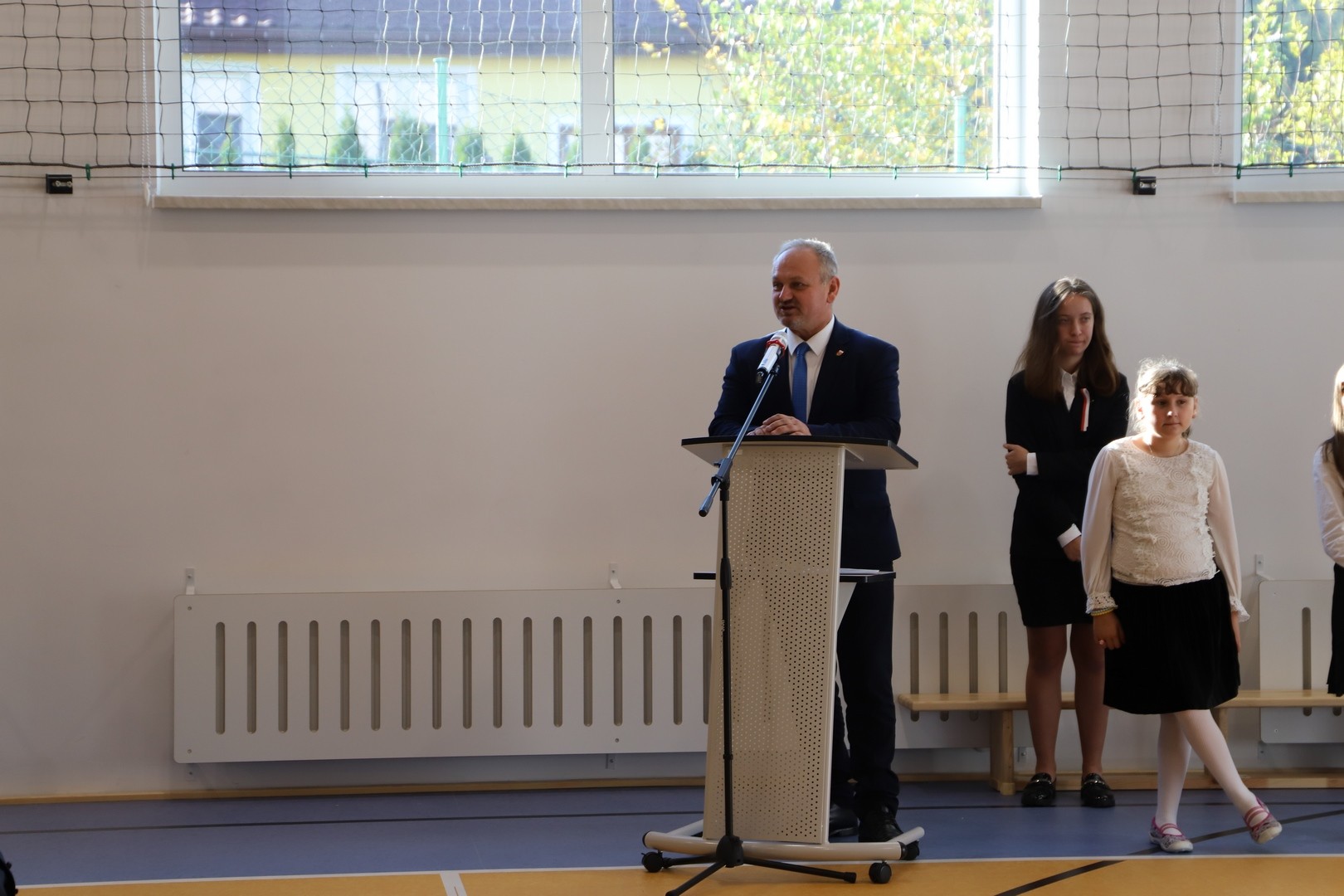 Podczas swojego przemówienia Wójt podkreślił, jak ważna jest obecność rodziców w życiu dzieci, zwracając uwagę, że rodzice uczniów znaleźli czas i przełożyli swoje obowiązki, aby towarzyszyć swoim pociechom w tym wyjątkowym dniu.