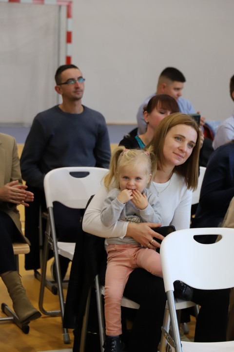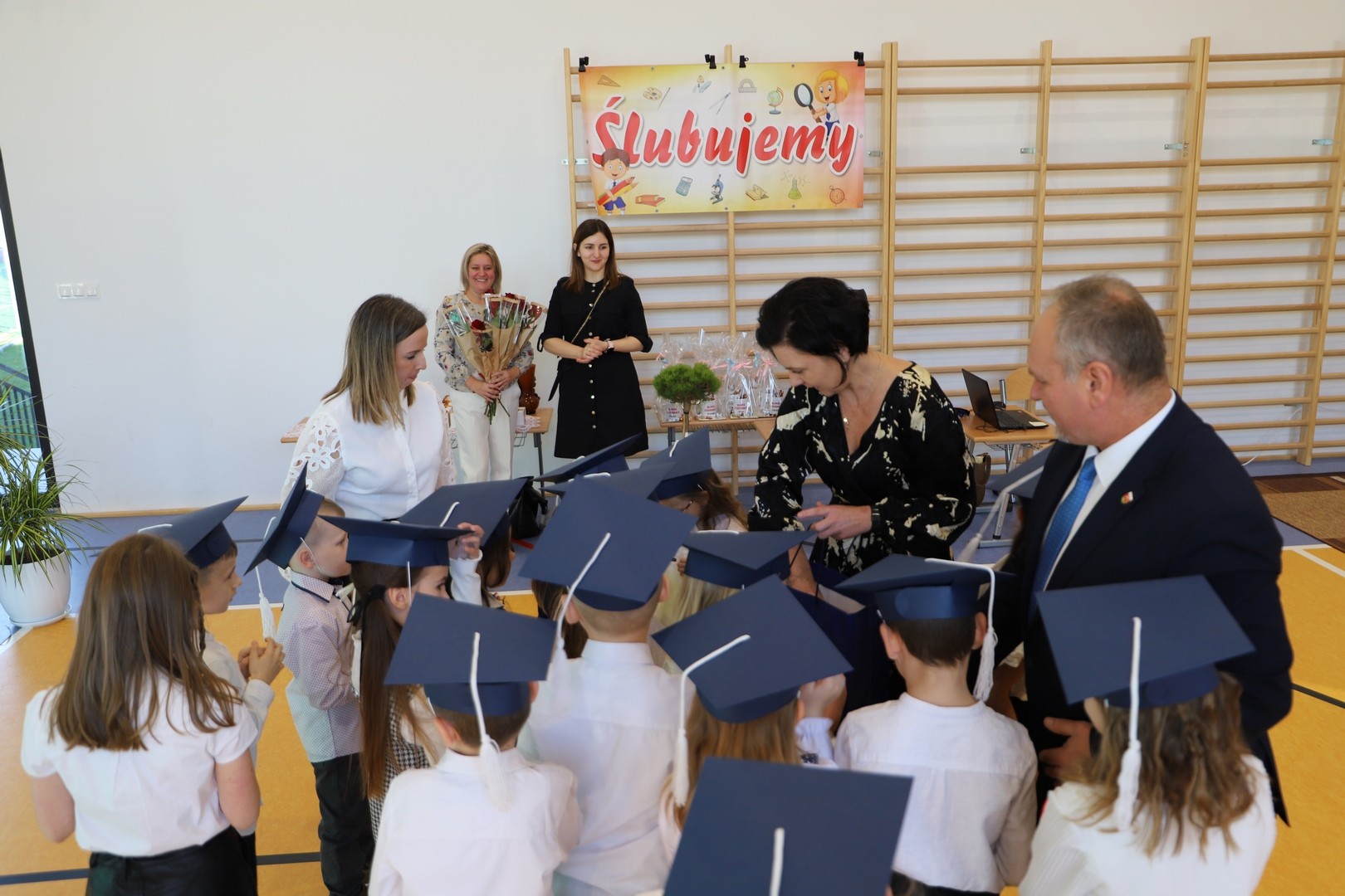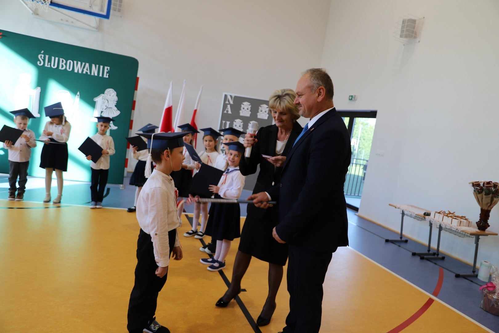 Podczas swojego przemówienia Wójt podkreślił, jak ważna jest obecność rodziców w życiu dzieci, zwracając uwagę, że rodzice uczniów znaleźli czas i przełożyli swoje obowiązki, aby towarzyszyć swoim pociechom w tym wyjątkowym dniu.