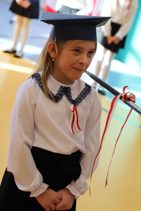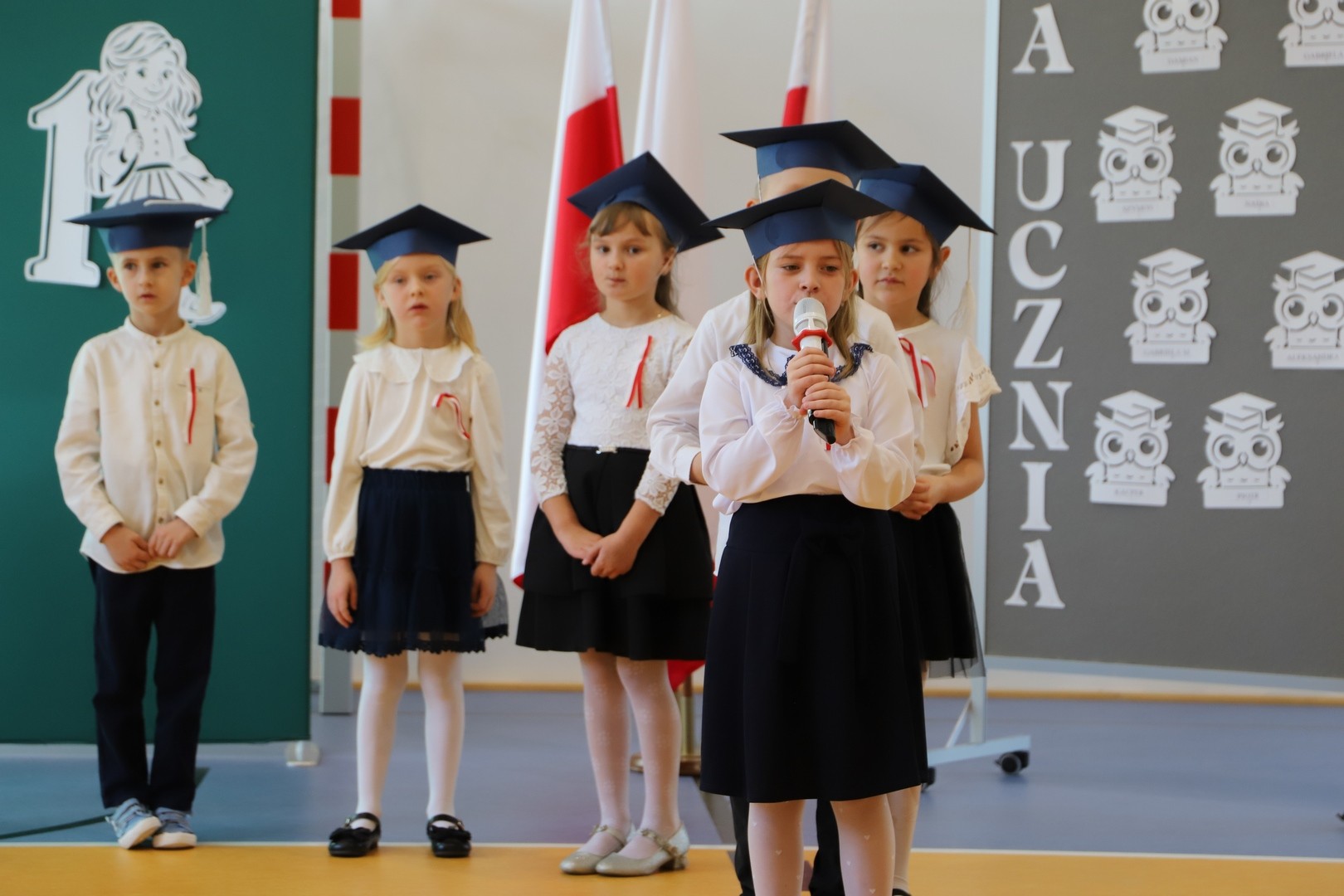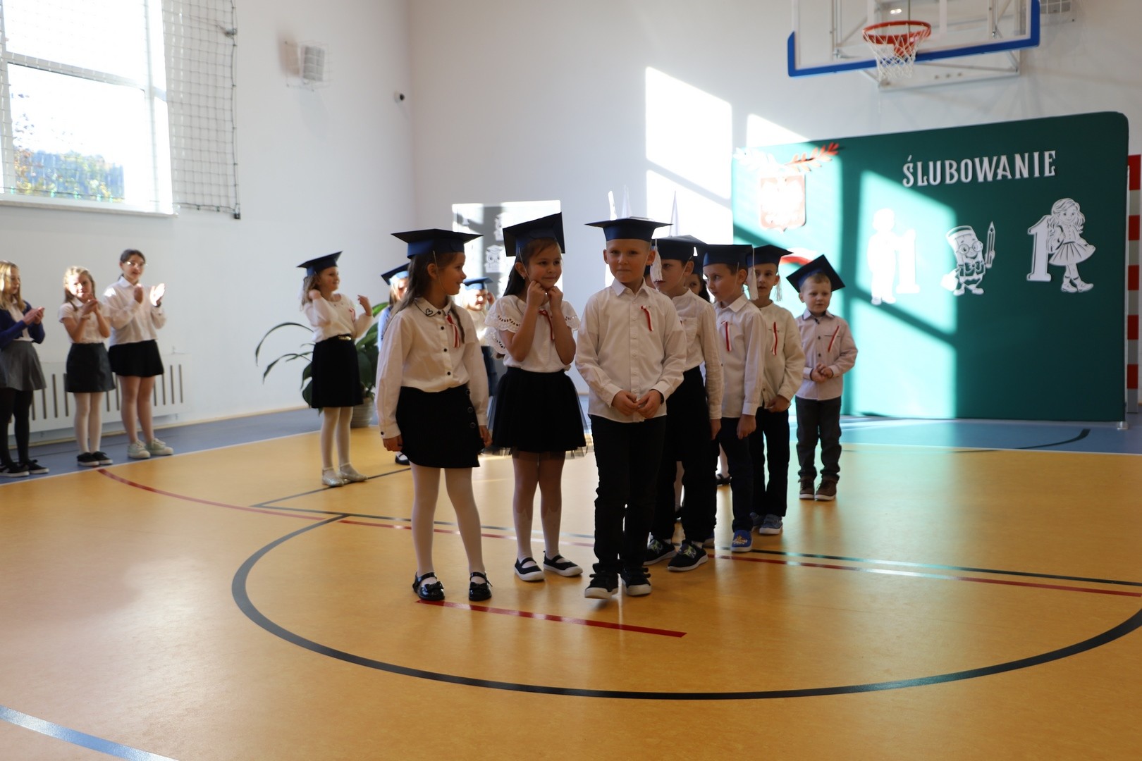 W dalszej części uroczystości pierwszoklasiści z dumą zaprezentowali przygotowany program artystyczny – recytowali wiersze, śpiewali piosenki, a także zaprezentowali taniec do „Marsza Radetzky’ego”, który został nagrodzony gromkimi brawami.
