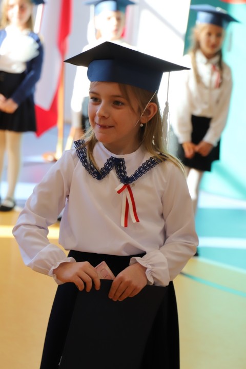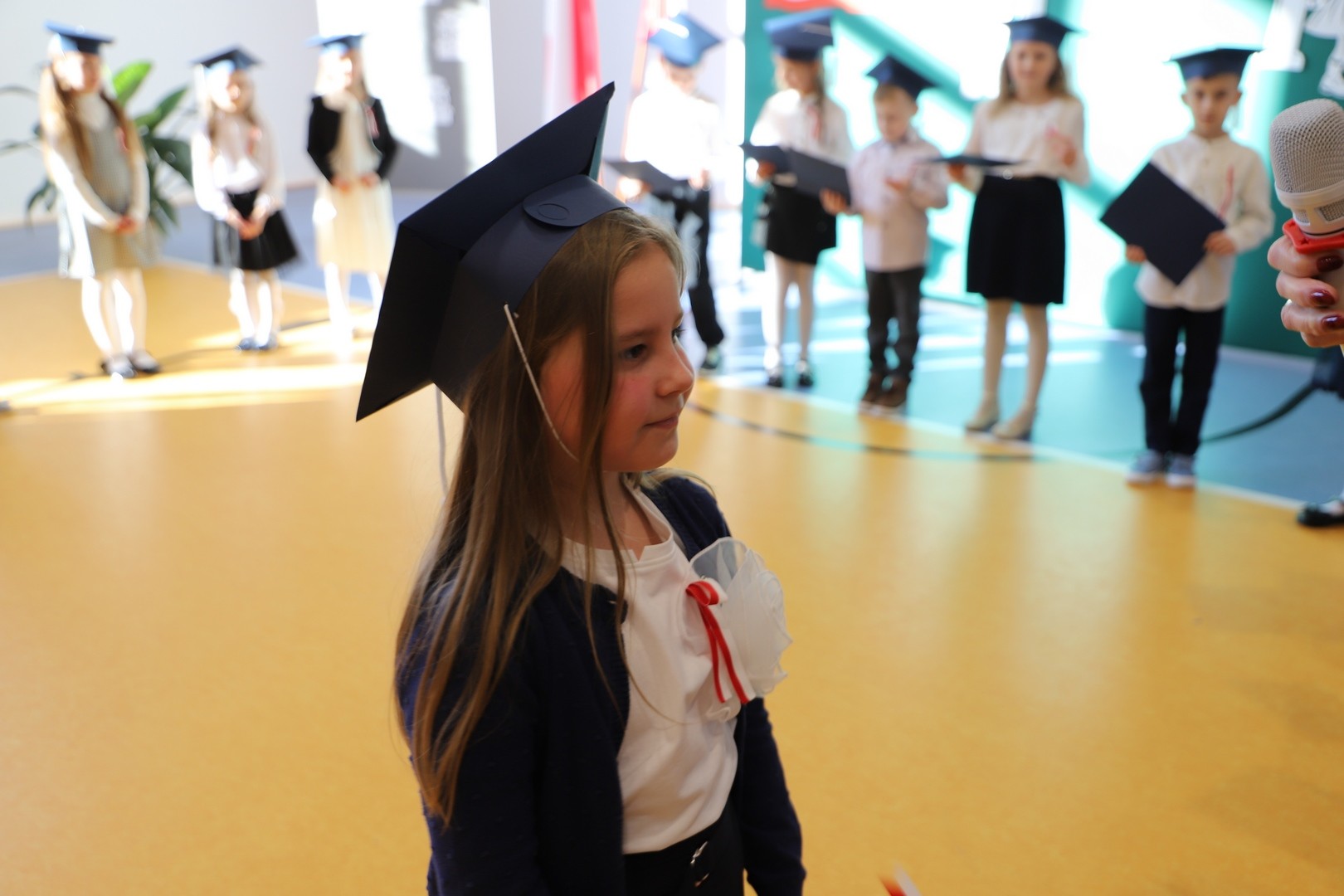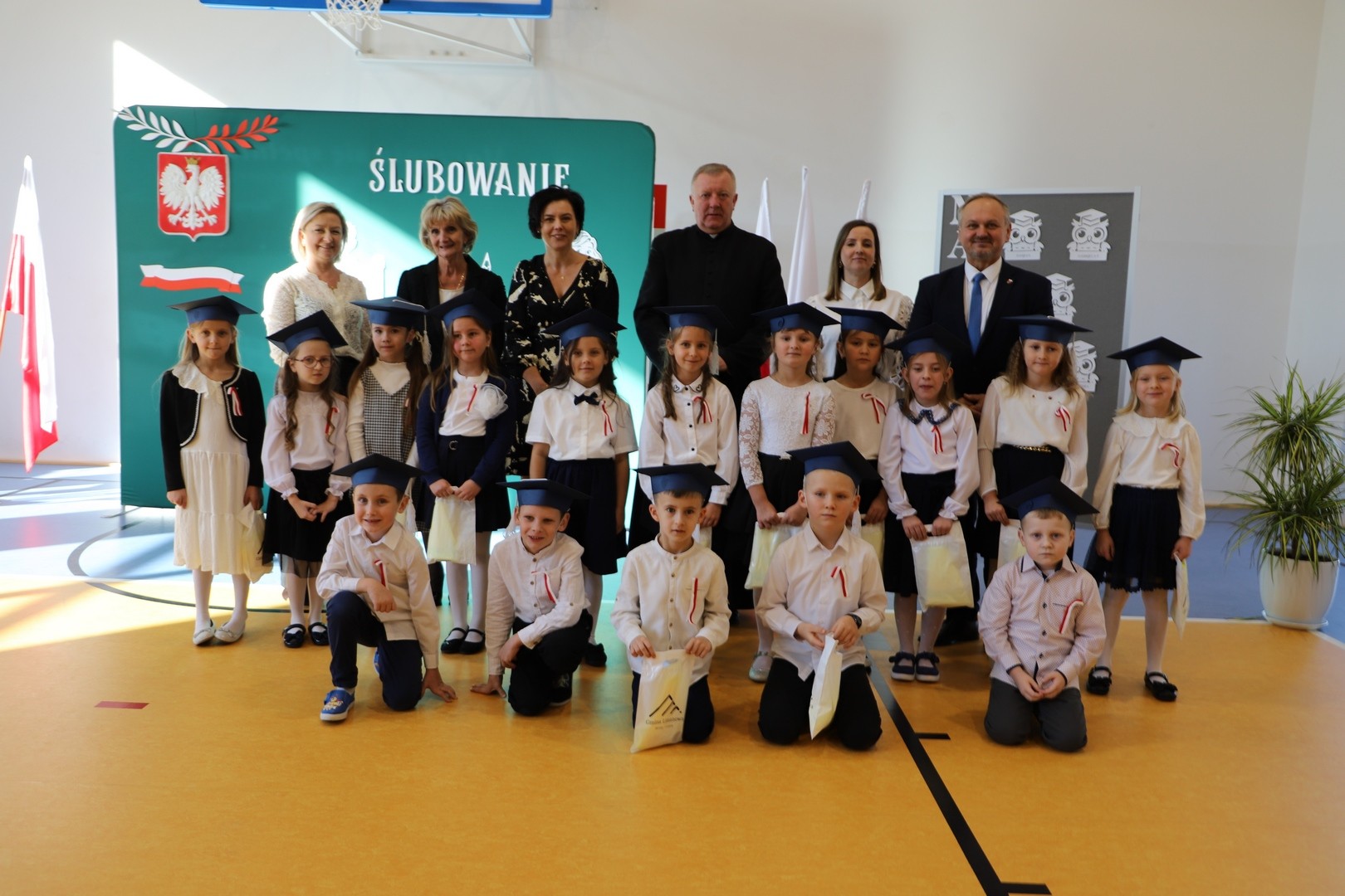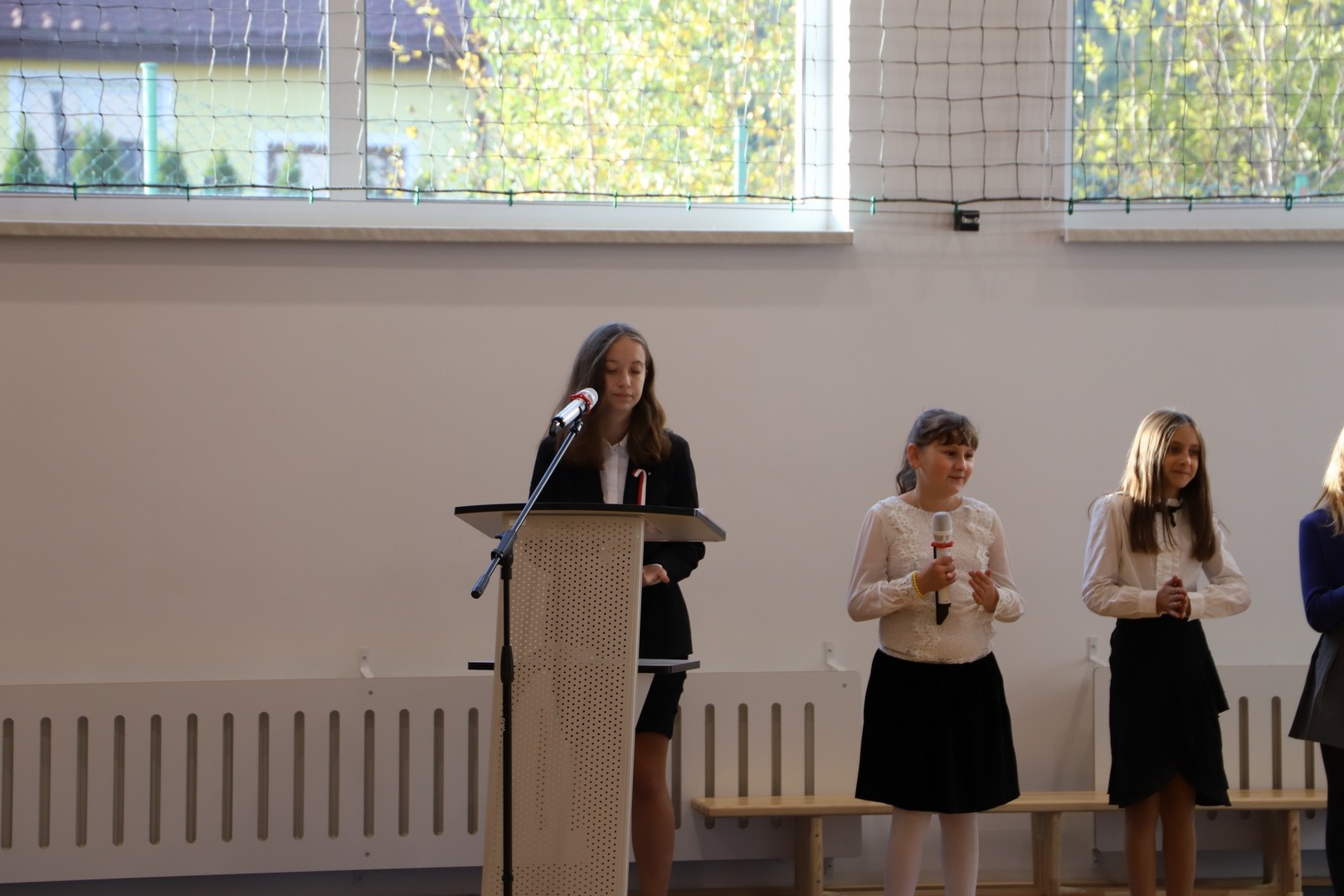W dalszej części uroczystości pierwszoklasiści z dumą zaprezentowali przygotowany program artystyczny – recytowali wiersze, śpiewali piosenki, a także zaprezentowali taniec do „Marsza Radetzky’ego”, który został nagrodzony gromkimi brawami.