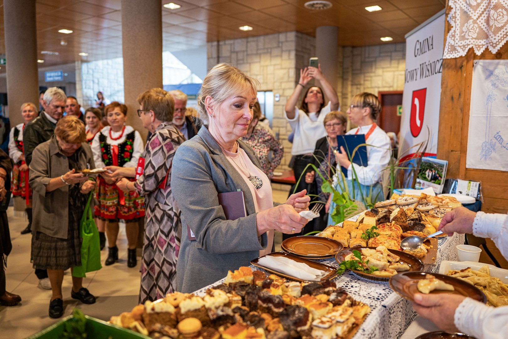 AGRODĘ GŁÓWNĄ PRZEGLĄDU – STATUETKĘ wraz z nagrodą pieniężną w wysokości 3 500,00 zł oraz pamiątkowy dyplom otrzymały panie z KGW z Nowego Bystrego, a I miejsce wraz z nagrodą pieniężną w wysokości 3 000,00 zł oraz pamiątkowy dyplom otrzymały gospodynie z Siołkowej.