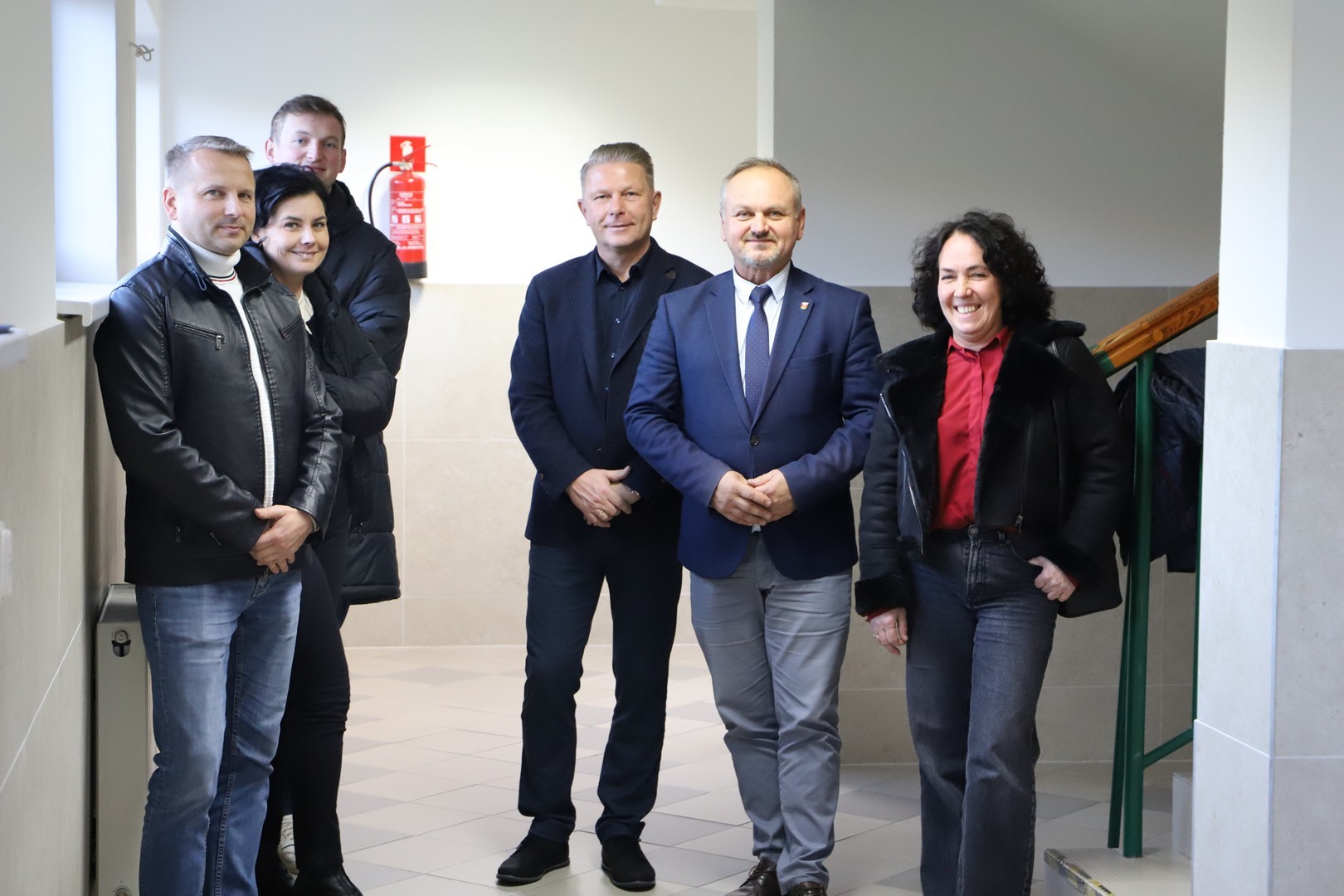 Wójt Gminy Limanowa Jan Skrzekut, Zastępca Wójta Gminy Limanowa Wojciech Pazdan, Dyrektor Gminnego Zespołu Obsługi Szkół Edyta Król, Dyrektor Szkoły Podstawowej w Rupniowie Robert Piwowarczyk, radna Gminy Limanowa Maria Rzeźnik, Artur Sosnowski Inspektor Wydziału Inwestycji i Funduszu Europejskich UG Limanowa oraz Jan Wojtas – wykonawca inwestycji.