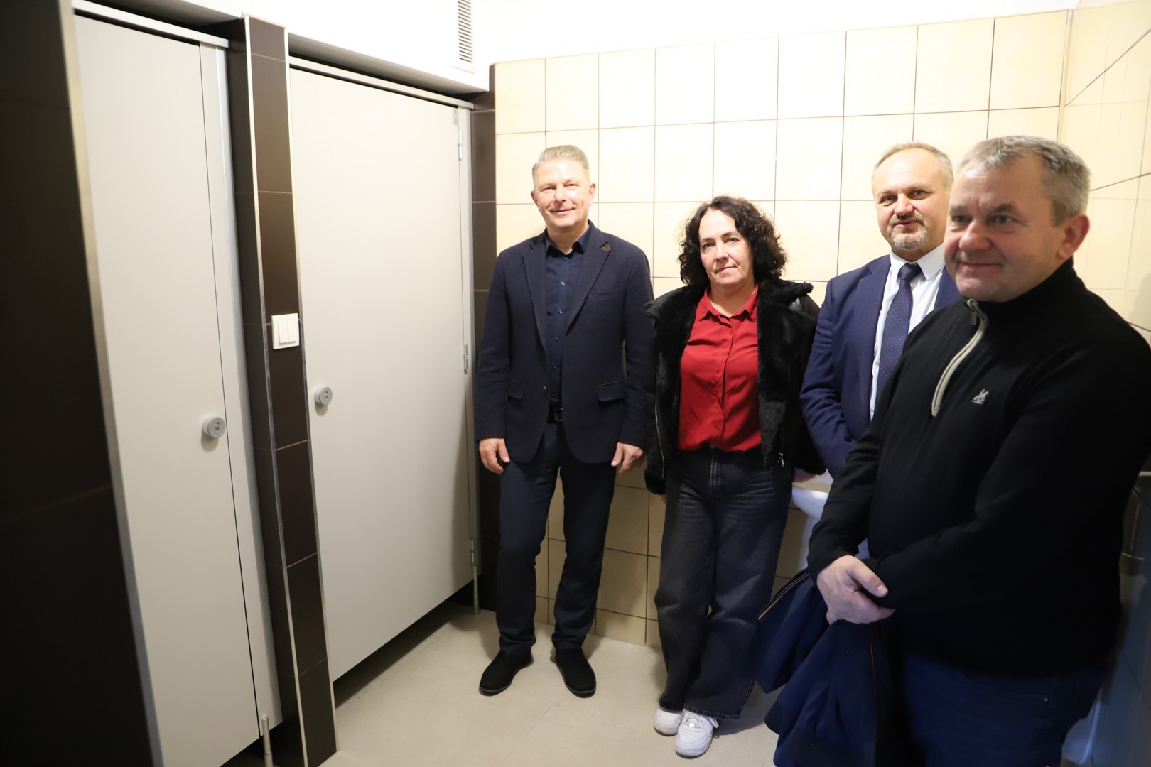Przedmiotem odbioru były prace modernizacyjne polegające na wykonaniu zabezpieczenia przeciwwilgociowego ścian wewnętrznych wraz z częściową wymianą stolarki drzwiowej w części szatniowo-sanitarnej w budynku szkoły podstawowej w Rupniowie. W ramach prac obłożono również ściany korytarza płytkami, wykonano nową posadzkę z płytek w sanitariatach, wymiano konieczne urządzeń oraz odmalowano pomieszczenia.