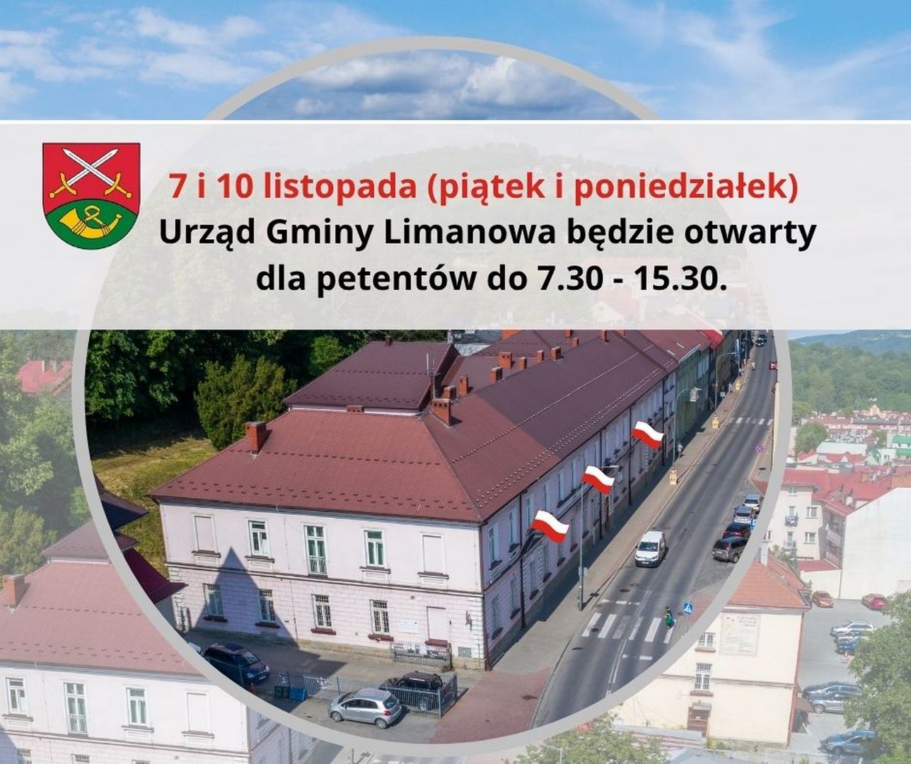 Urząd Gminy Limanowa czynny 7 i 10 listopada