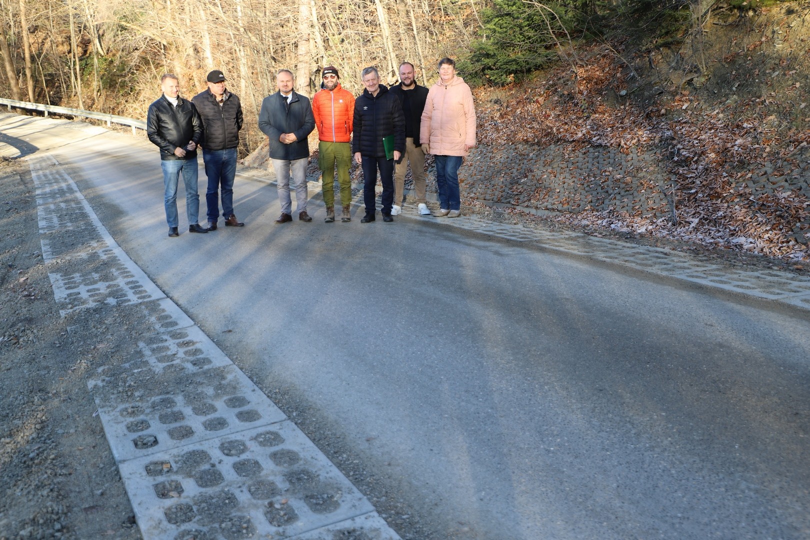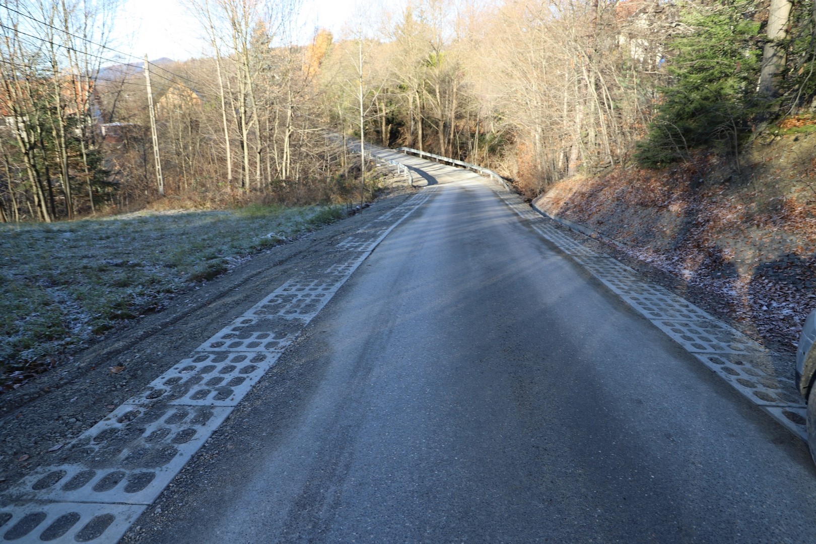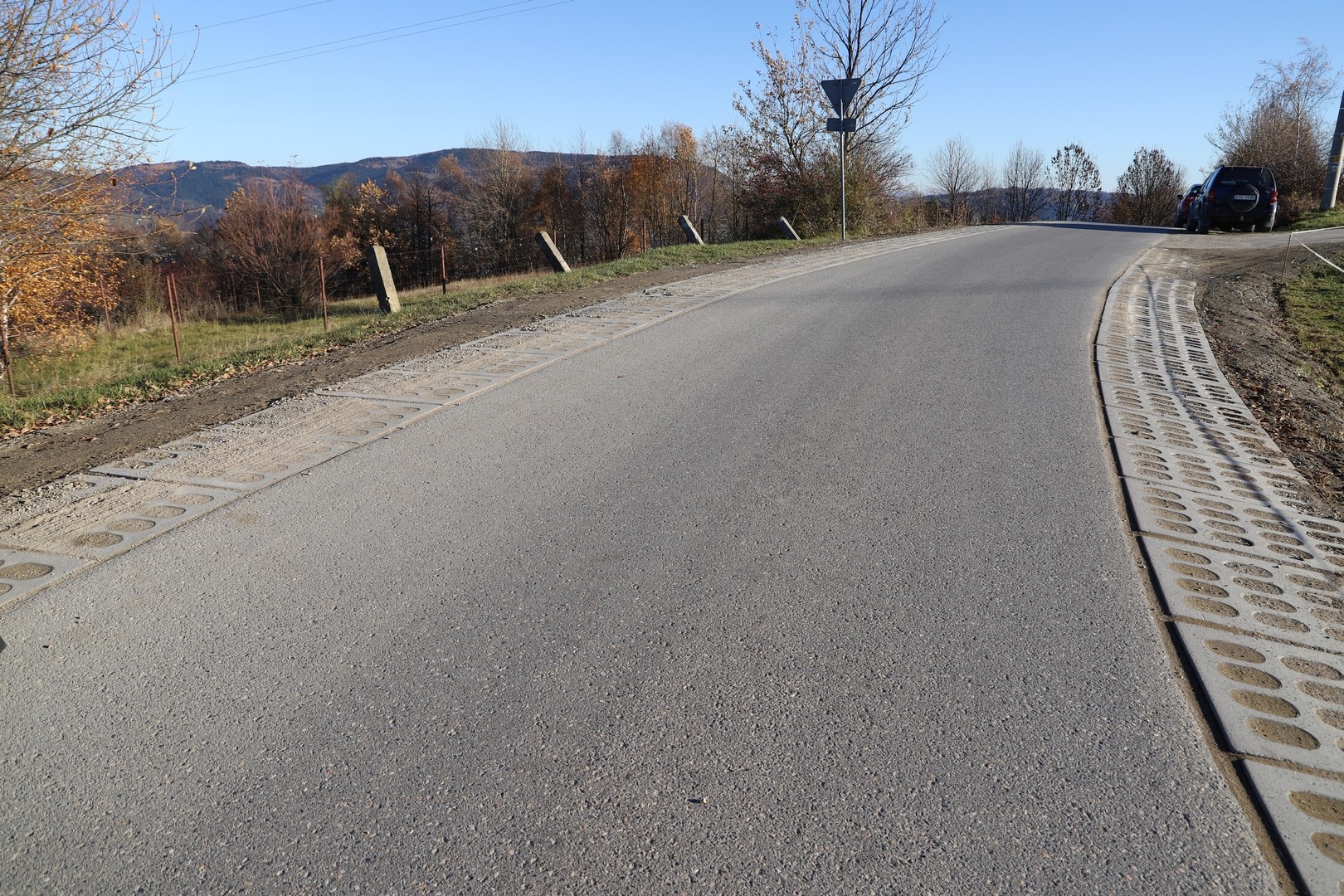 – Rupniów. Dokonano stabilizacji dwóch odcinków drogi w miejscach gdzie występują czynne osuwiska, a także w miejscach najbardziej narażonych na uszkodzenia poboczy tj. na stromiznach i zakrętach. Dodatkowo wykonano ażurowe pobocza z płyt żelbetowych ułożonych na betonie na sumarycznej długości około 750 m, co zapewni większą trwałość w użytkowaniu drogi.