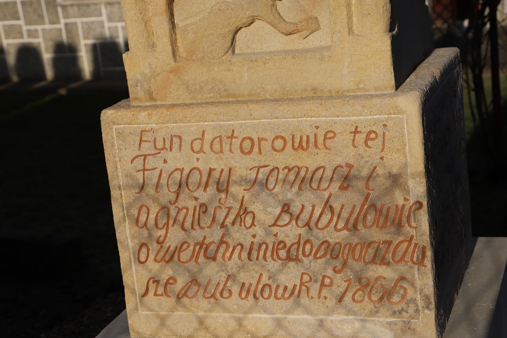 Renowacja objęła kompleksową konserwację kapliczki, która polegała na wykonaniu : projektu stopy fundamentowej (kapliczka nie posiadała jednolitej stopy fundamentowej tylko utwardzony grunt), demontażu oraz ponownego montażu kapliczki, wykonaniu stopy fundamentowej oraz konserwacji kamiennych elementów kapliczki. Dzięki temu obiekt odzyskał swój pierwotny charakter i estetykę.