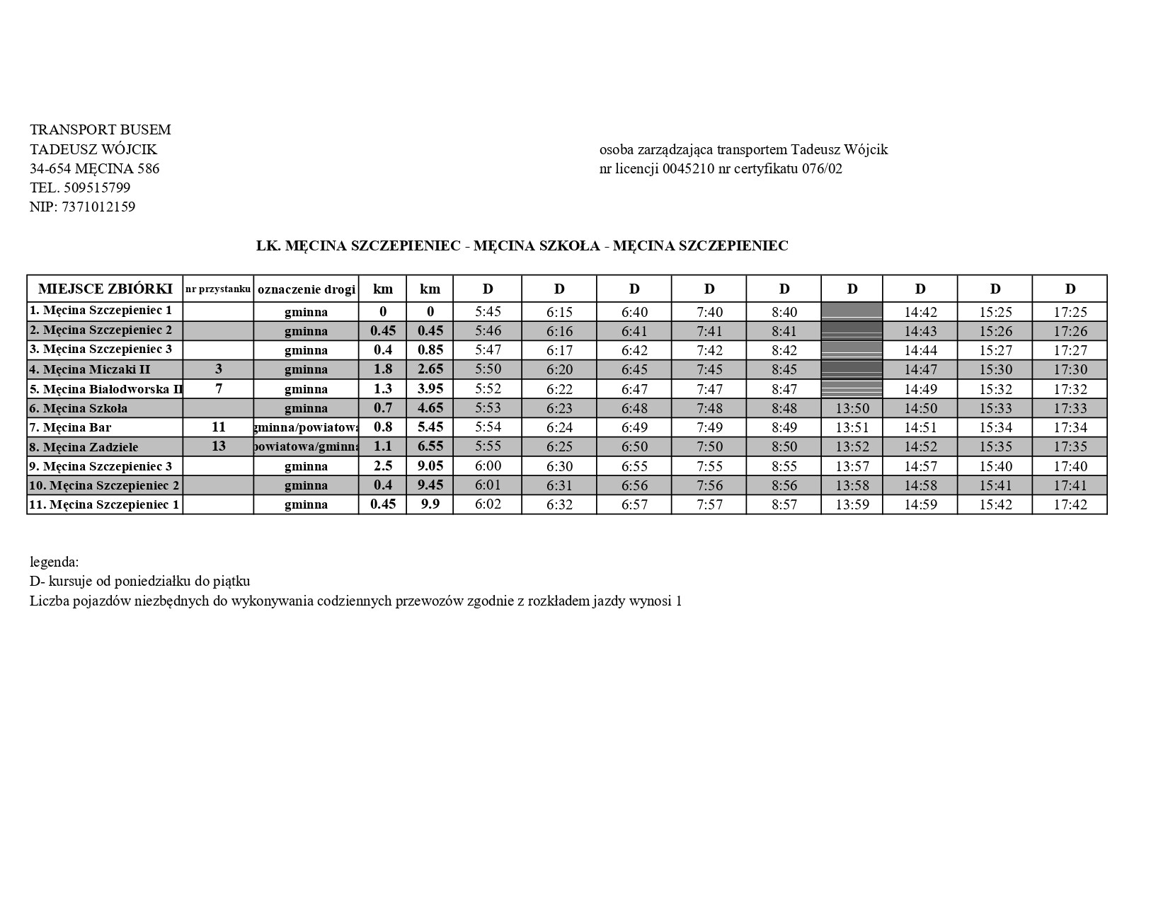 Rozkład jazdy komunikacji zastępczej na ulicy Szczepieniec w Męcinie