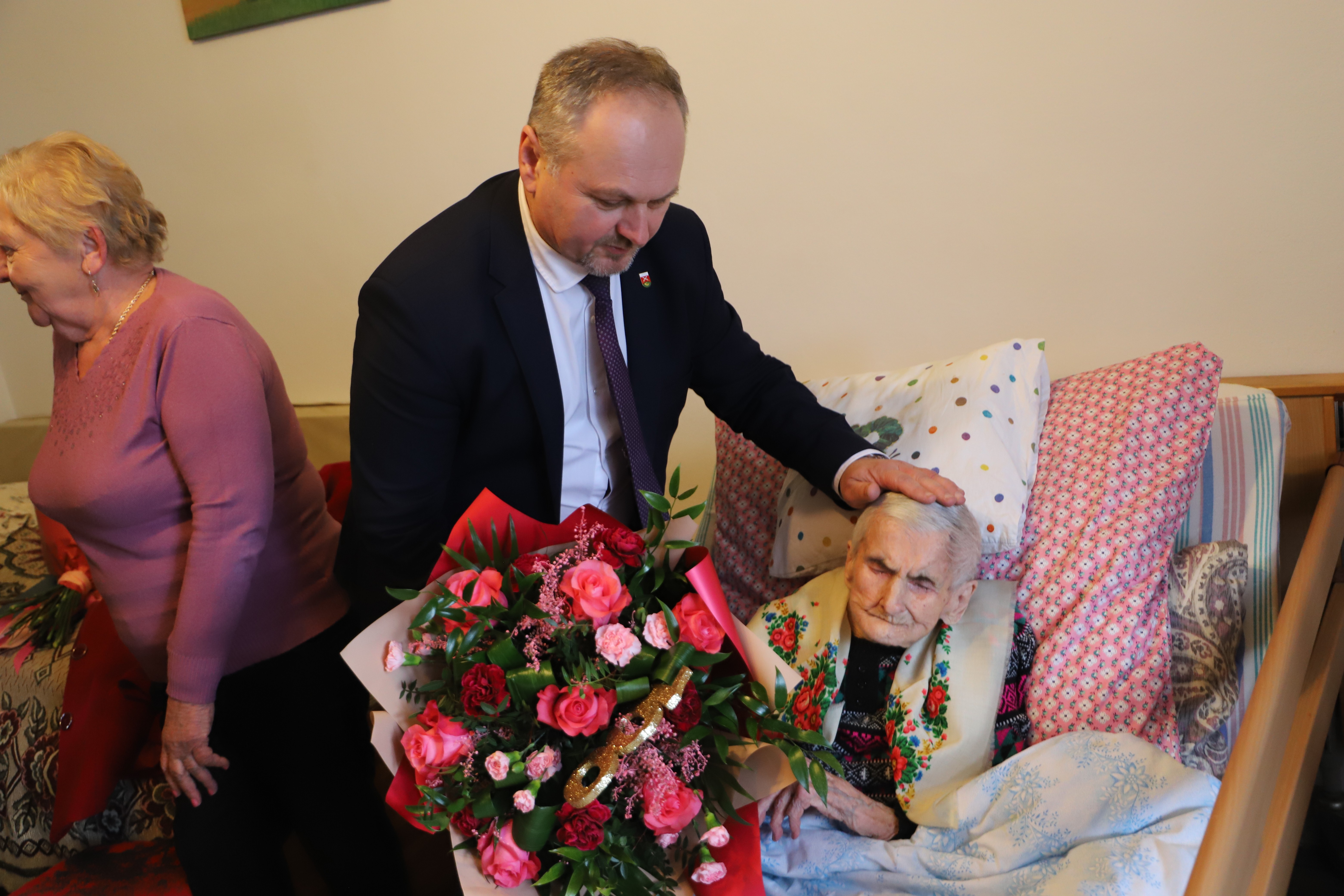 Życzenia i gratulacje będące wyrazem ogromnego szacunku dla Pani Heleny skierował Wójt Gminy Limanowa – Jan Skrzekut, który z dumą podkreślił zadowolenie z faktu, że w naszej gminie jest już druga osoba, której osobiście może pogratulować tak zaszczytnego wieku.