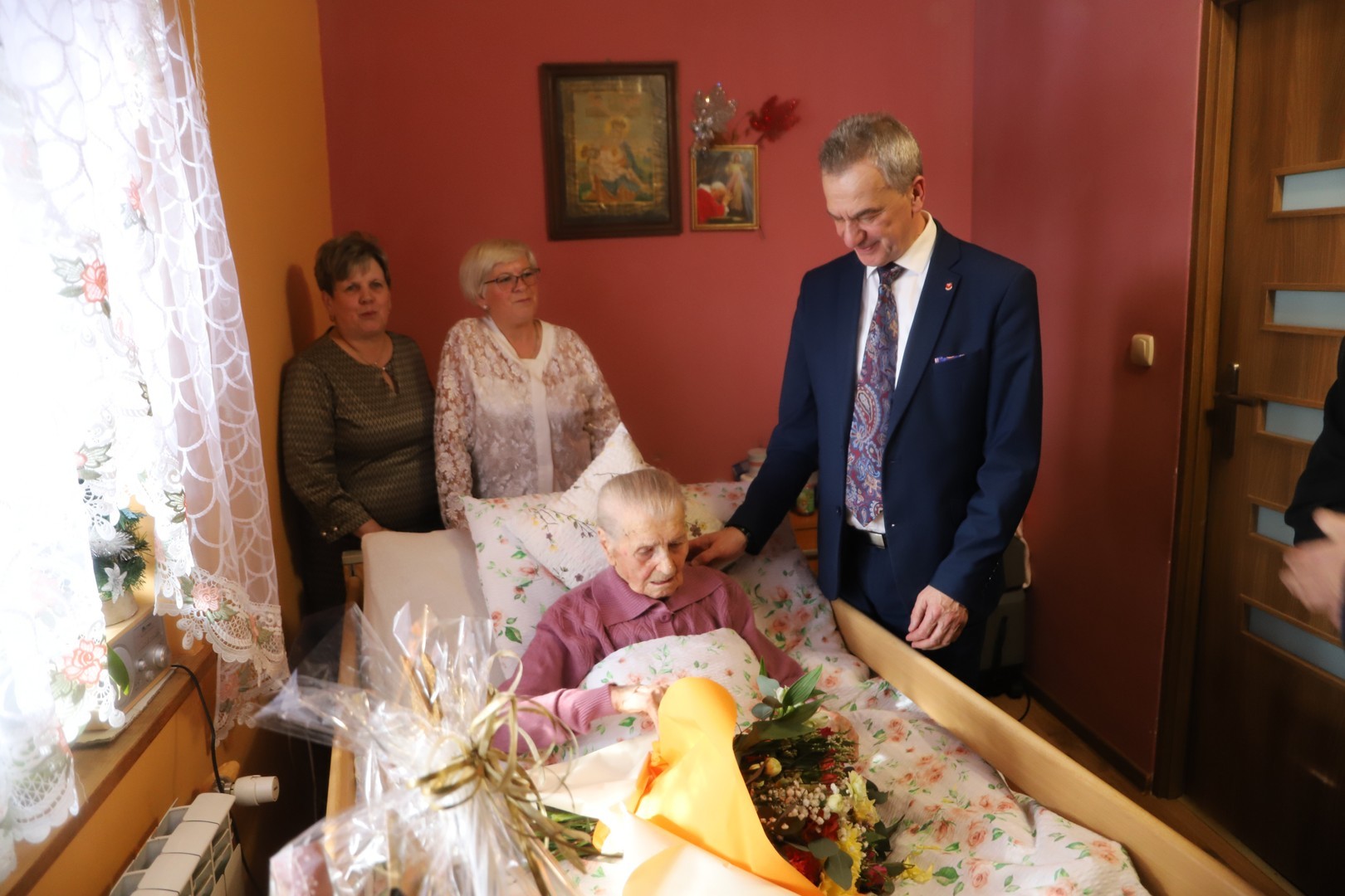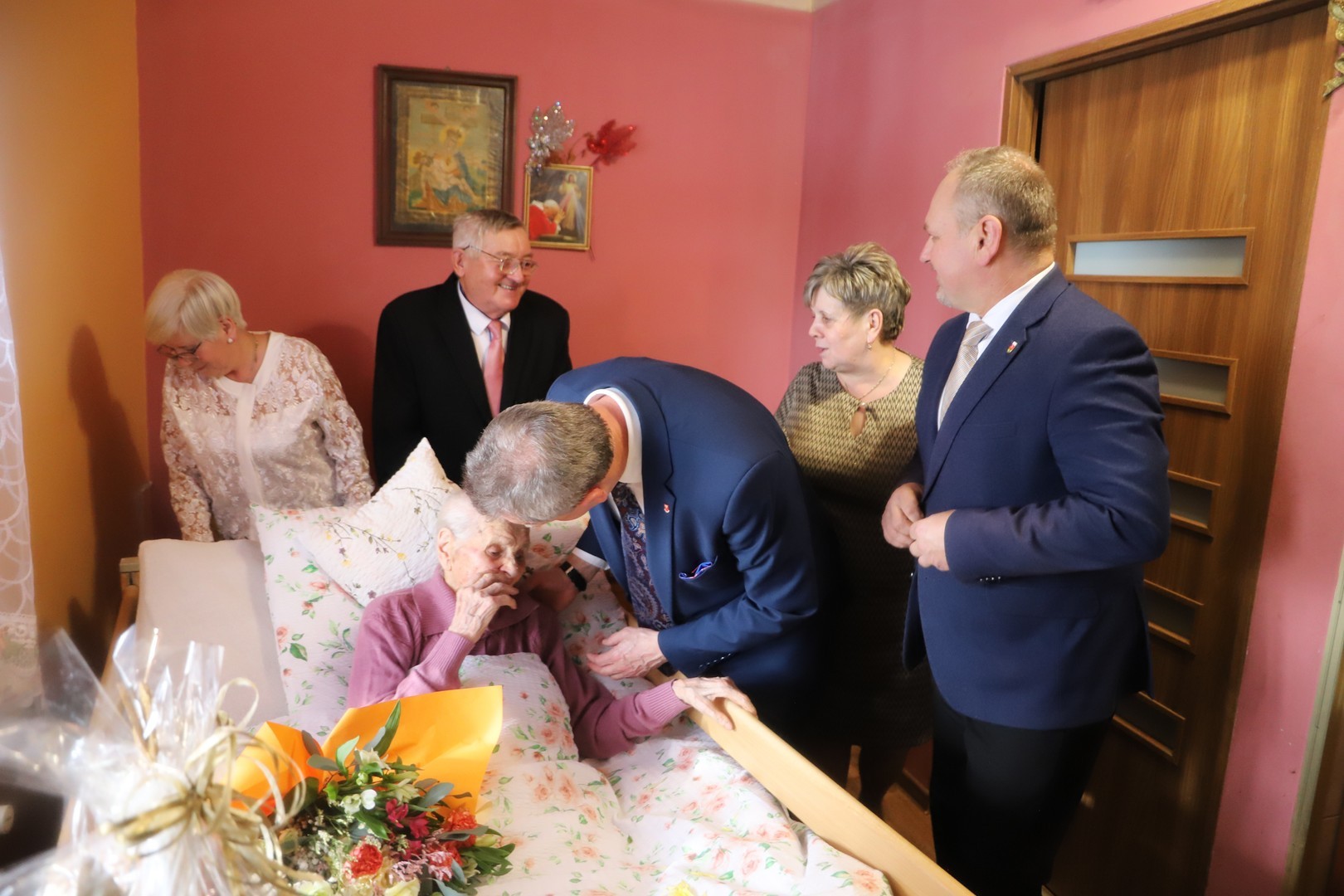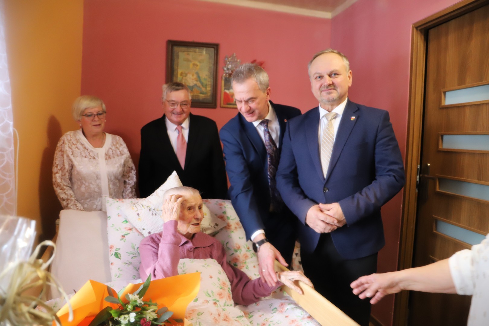 Z tej okazji panią Marię odwiedził Wójt Gminy Limanowa Jan Skrzekut, oraz Starosta Powiatu Limanowskiego Mieczysław Uryga prywatnie syn jubilatki.