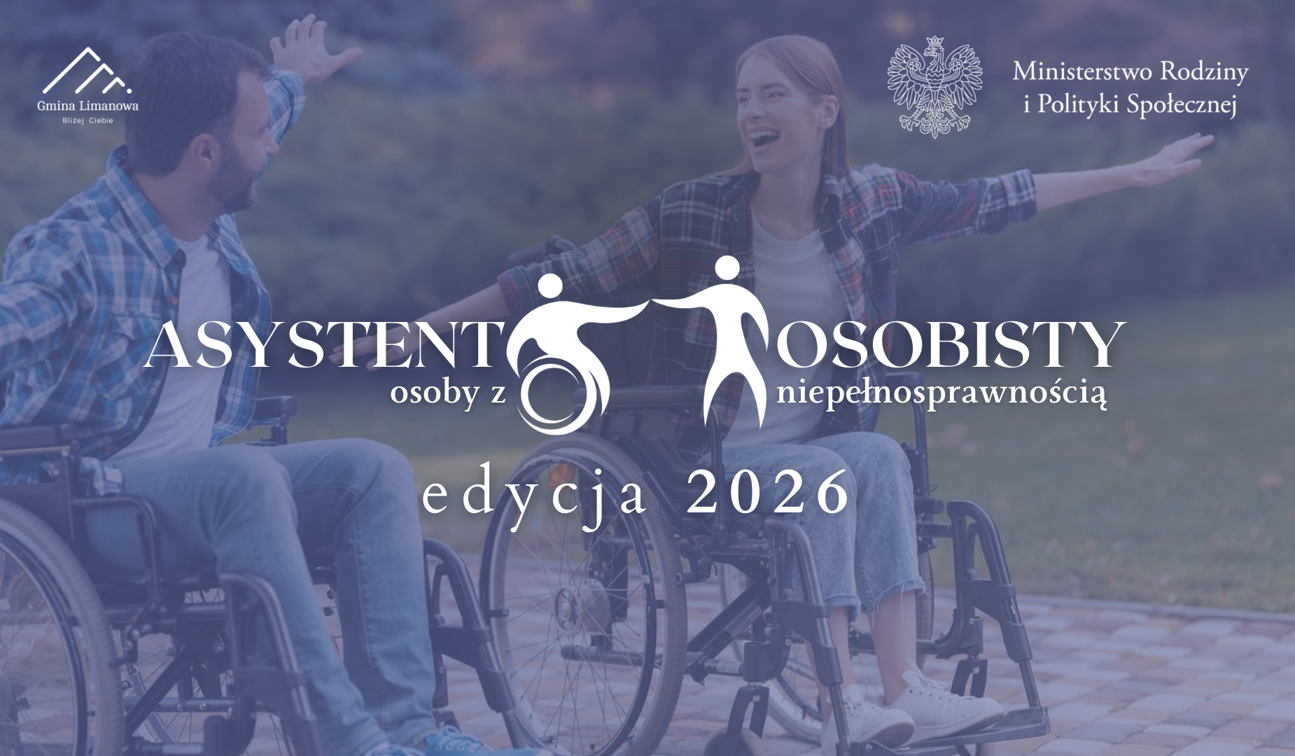 Gminny Ośrodek Pomocy Społecznej w Limanowej informuje, że w ślad za ogłoszonym przez Ministerstwo Rodziny, Pracy i Polityki Społecznej naborem wniosków do Programu „Asystent osobisty osoby z niepełnosprawnością” dla Jednostek Samorządu Terytorialnego - edycja 2026, oraz podpisaną umową przez Gminę Limanowa z Wojewodą Małopolskim w sprawie realizacji zadania w ramach w/w Programu,