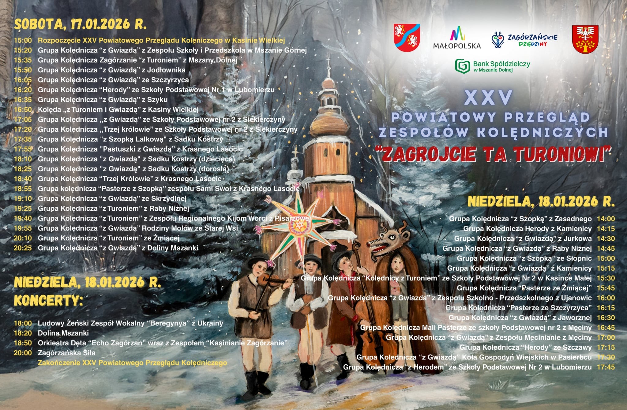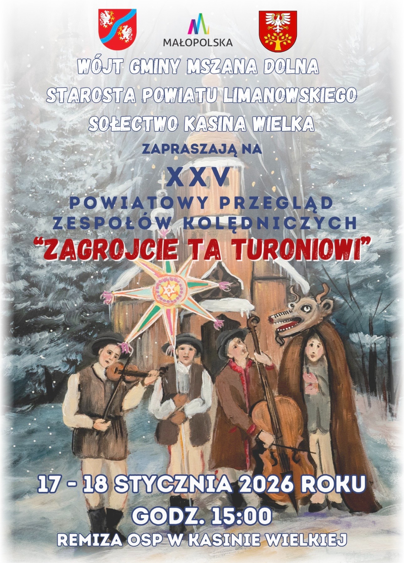 Zapraszamy do kibicowania reprezentantom gminy Limanowa podczas XXV Powiatowego Przeglądu Zespołów Kolędniczych "Zagrojcie ta turoniowi" w Kasinie Wielkiej, który odbędzie się 17-18 stycznia.