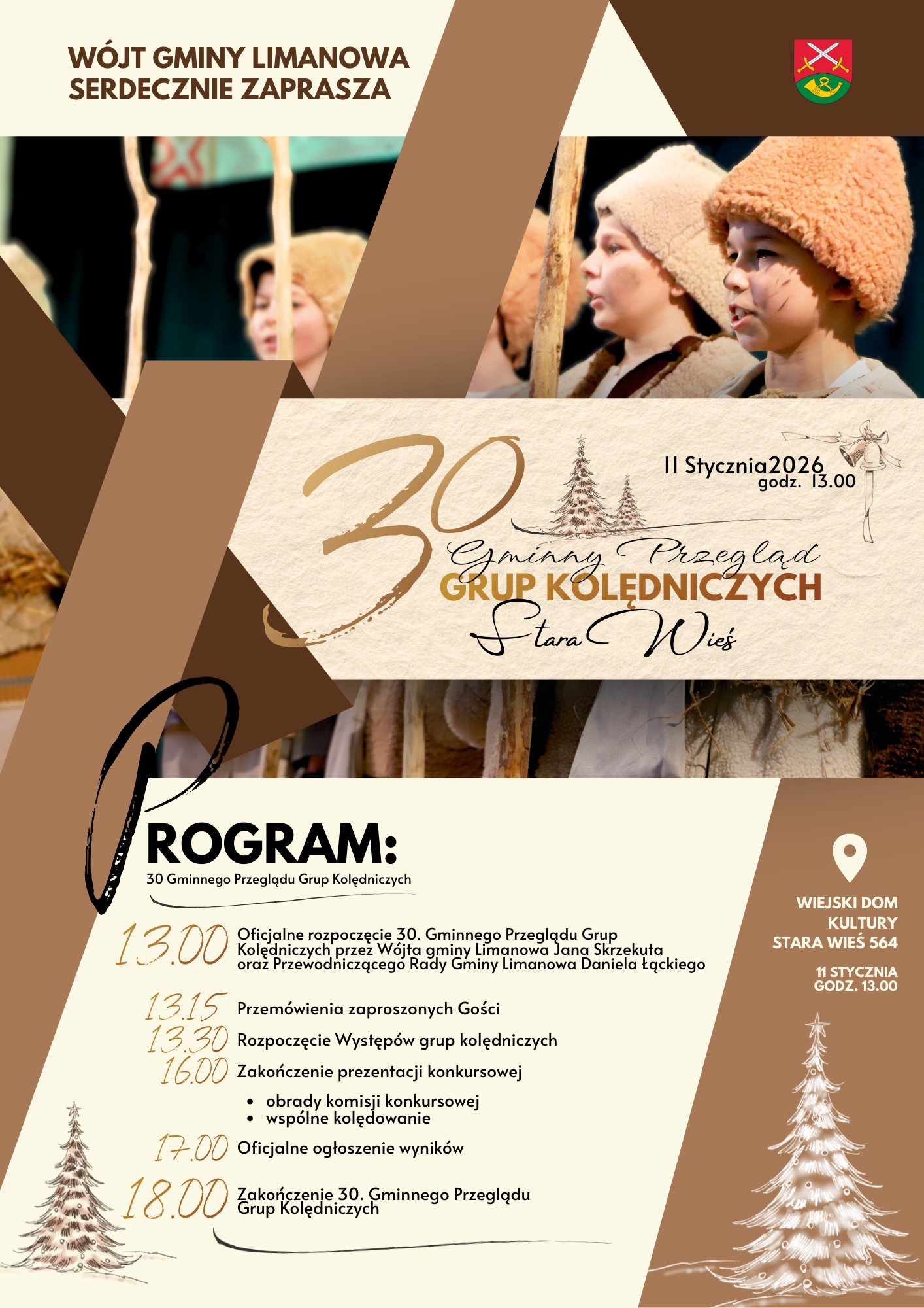 11 stycznia 2026 w świetlicy w Starej Wsi odbędzie się 30. Przegląd Grup Kolędniczych z terenu Gminy Limanowa.