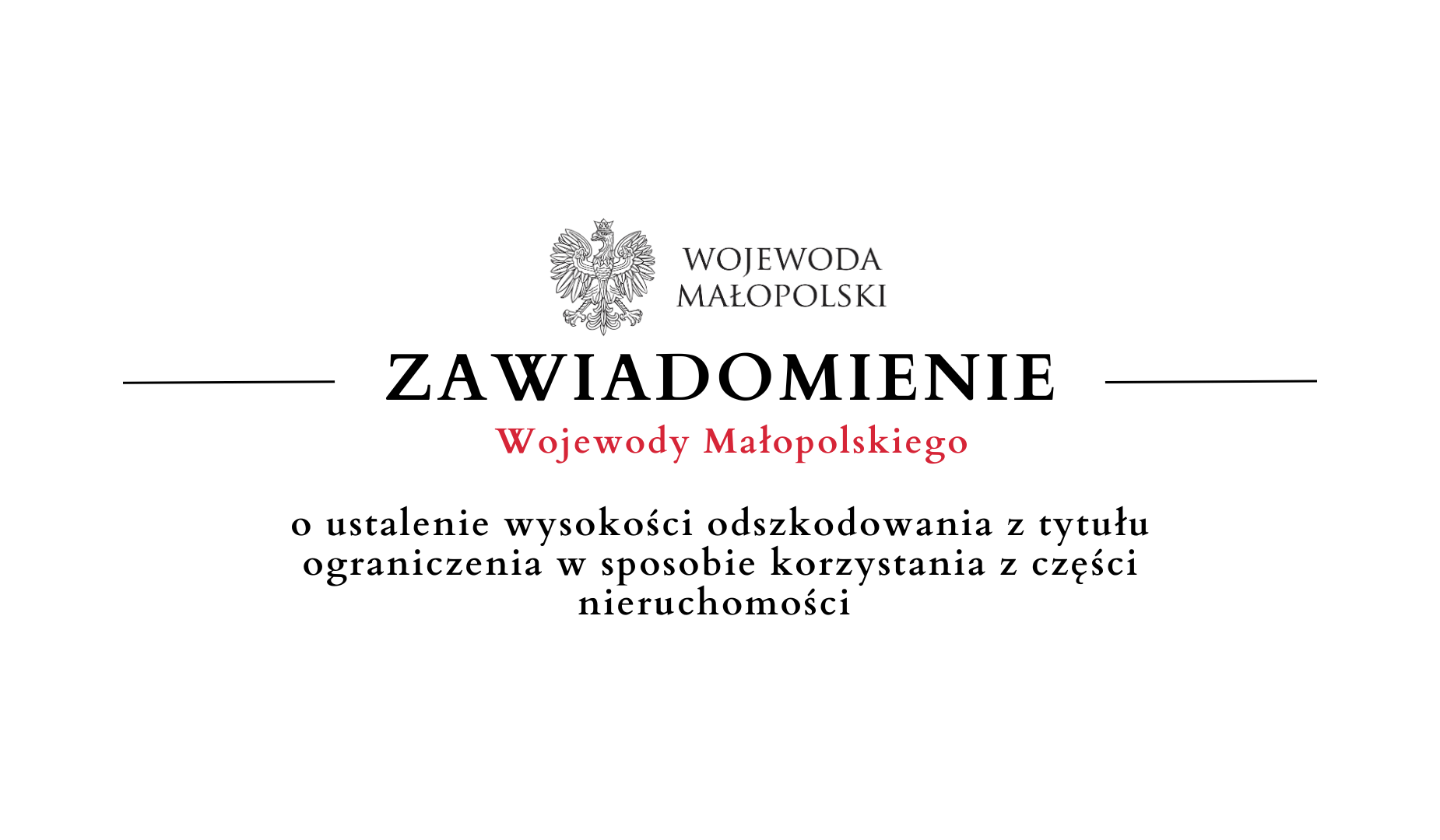 objęte decyzją Wojewody Małopolskiego z dnia 29 kwietnia 2025 r. znak: WIIV.747.2.14.2024, o ustaleniu lokalizacji linii kolejowej dla inwestycji pn.: „Rozbiórka, przebudowa, rozbudowa i budowa obiektu budowlanego pn.: linia kolejowa nr 104 Chabówka – Nowy Sącz na odc. C1 od km proj. 34+366 (km istn. 34+493) do km proj. 44+866 (km istn. 45+900) wraz z infrastrukturą techniczną wzdłuż linii kolejowej nr 104 od km istn. 34+230 do km proj. 45+340 (km istn. 46+375) oraz budowa obiektu budowlanego pn.: linia kolejowa nr 622 Podłęże R401 – Tymbark od km proj. 40+576 do km proj. 43+183 wraz z infrastrukturą techniczną wzdłuż linii kolejowej nr 622 od km proj. 40+438 do km proj. 43+183”, w związku z realizacją inwestycji kolejowej obejmującej budowę lub przebudowę tunelu, a także prace związane z jego konserwacją, utrzymaniem lub usuwaniem awarii, tut. Wydział uprzejmie 2 informuje, że postępowania te nie mogą być zakończone w terminie, z powodu konieczności dalszego kompletowania materiału dowodowego umożliwiającego ustalenie czy, a jeśli tak, to w jakich wysokościach przysługiwać będą odszkodowania z tytułu ograniczenia w sposobie korzystania z części tych nieruchomości.