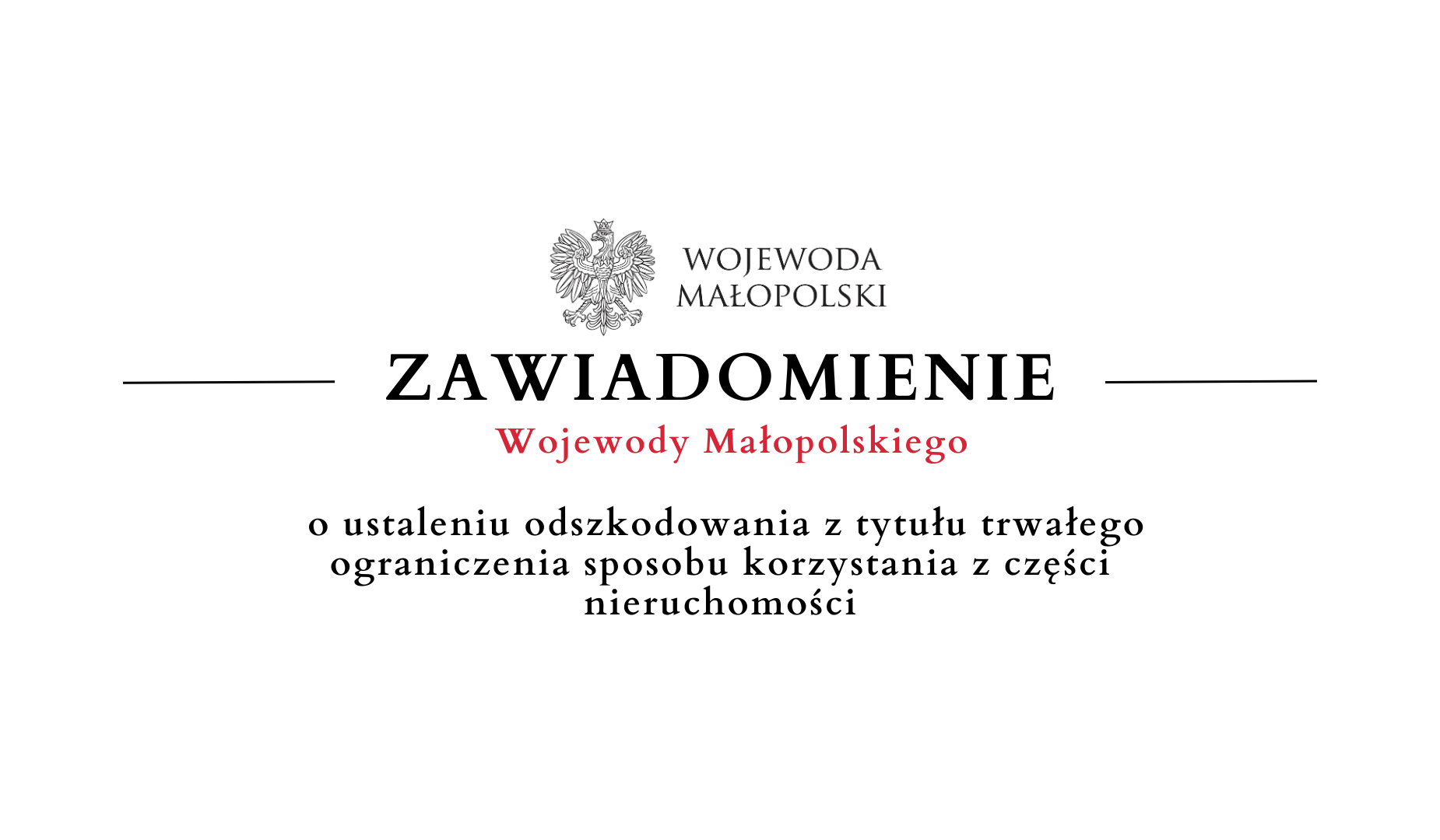 Na podstawie ustawy z dnia 28 marca 2003 r. o transporcie kolejowym (tekst jednolity: Dz. U. z 2025 r., poz. 1234), art. 118a ust. 2 ustawy z dnia 21 sierpnia 1997 r. o gospodarce nieruchomościami (tekst jednolity: Dz. U. z 2024 r., poz. 1145), w związku z art. 49 ustawy z dnia 14 czerwca 1960 r. Kodeks postępowania administracyjnego (tekst jednolity: Dz. U. z 2025 r., poz. 1691), zawiadamiam, że Wojewoda Małopolski decyzją Nr 2 z dnia 7 stycznia 2026 r., znak: WS-VIII.7570.5.179.2024.AP, orzekł: