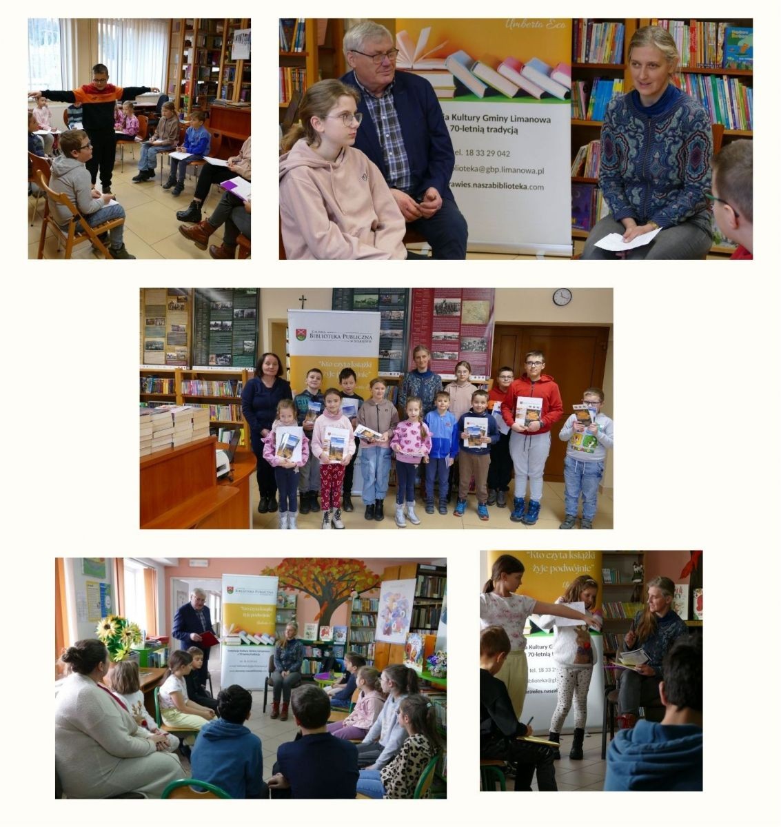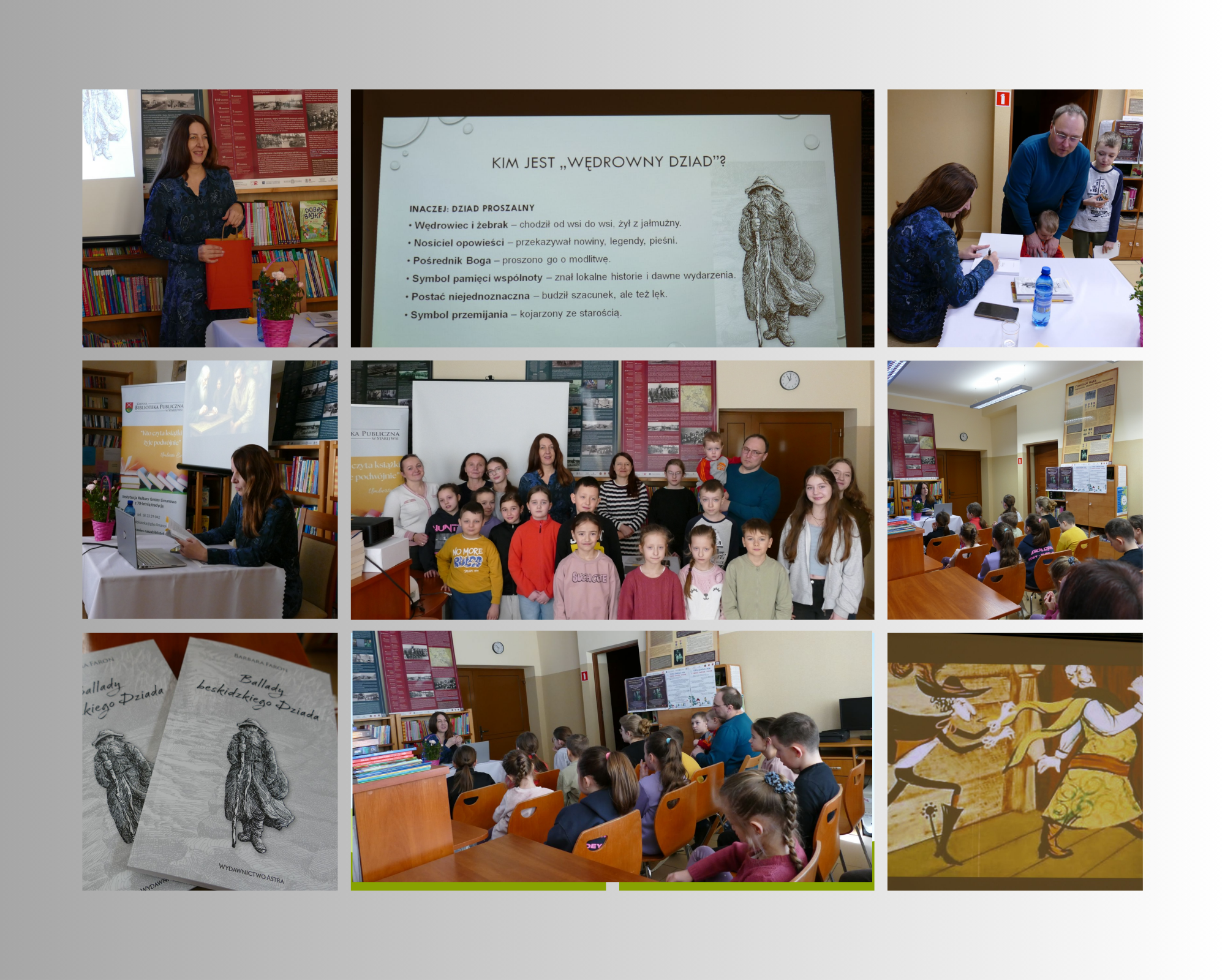 w bibliotece w Starej Wsi. Autorka w niezwykle barwny sposób opowiadała o swojej twórczości oraz o tym, jak powstają historie inspirowane dawnymi wierzeniami i beskidzkimi legendami. Dzieci poznały postać tajemniczego Dziada, a także świat boginek, strzygoni i innych istot z ludowych podań. Fragmenty czytanych ballad wprowadziły słuchaczy w klimat dawnych czasów, pełnych magii, symboli i morałów. Pisarka podkreślała, że legendy uczą odwagi, mądrości i szacunku do tradycji, a także pomagają odróżniać dobro od zła. Spotkanie miało ciepły, kameralny charakter – nie zabrakło pytań od młodych czytelników, wspólnych rozmów oraz autografów. Na zakończenie autorka przekazała bibliotece swoje książki, pozostawiając po sobie nie tylko dedykacje, ale i inspirację do dalszego odkrywania świata literatury.