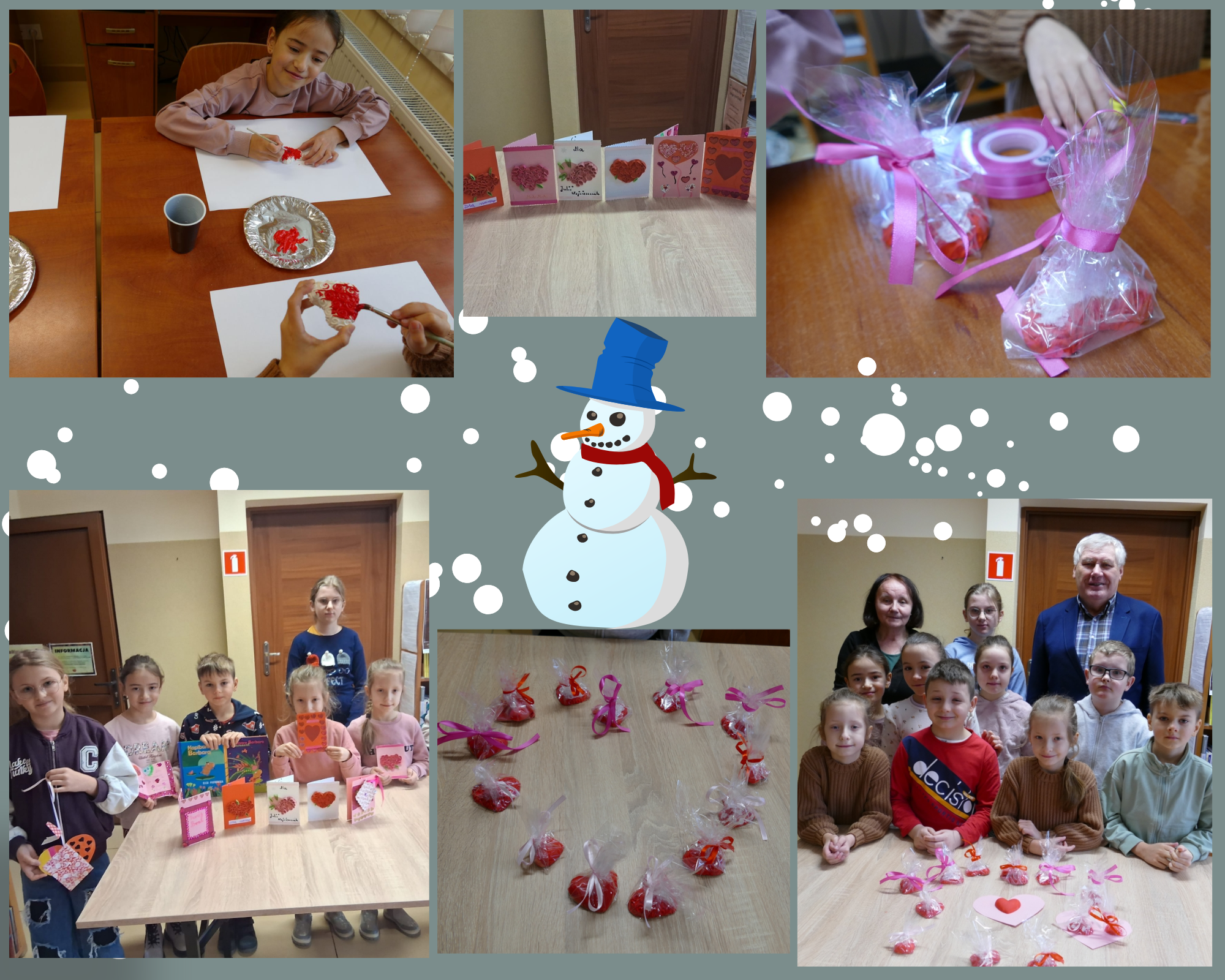 Ferie w bibliotece to również bogata oferta warsztatów plastycznych. Dzieci tworzyły ,,zimowe lampiony w słoiku” techniką decoupage, ,,zimowy krajobraz”, walentynkowe kartki i ozdoby, gipsowe serduszka, drewniane breloczki oraz własne wersje „Plastusiowego piórnika”. Zajęcia odbywały się w kilku filiach, a mali artyści wykazali się ogromną wyobraźnią i starannością. Powstałe prace zachwycały kolorami i pomysłowością, a uczestnicy z dumą zabierali je do domów.
