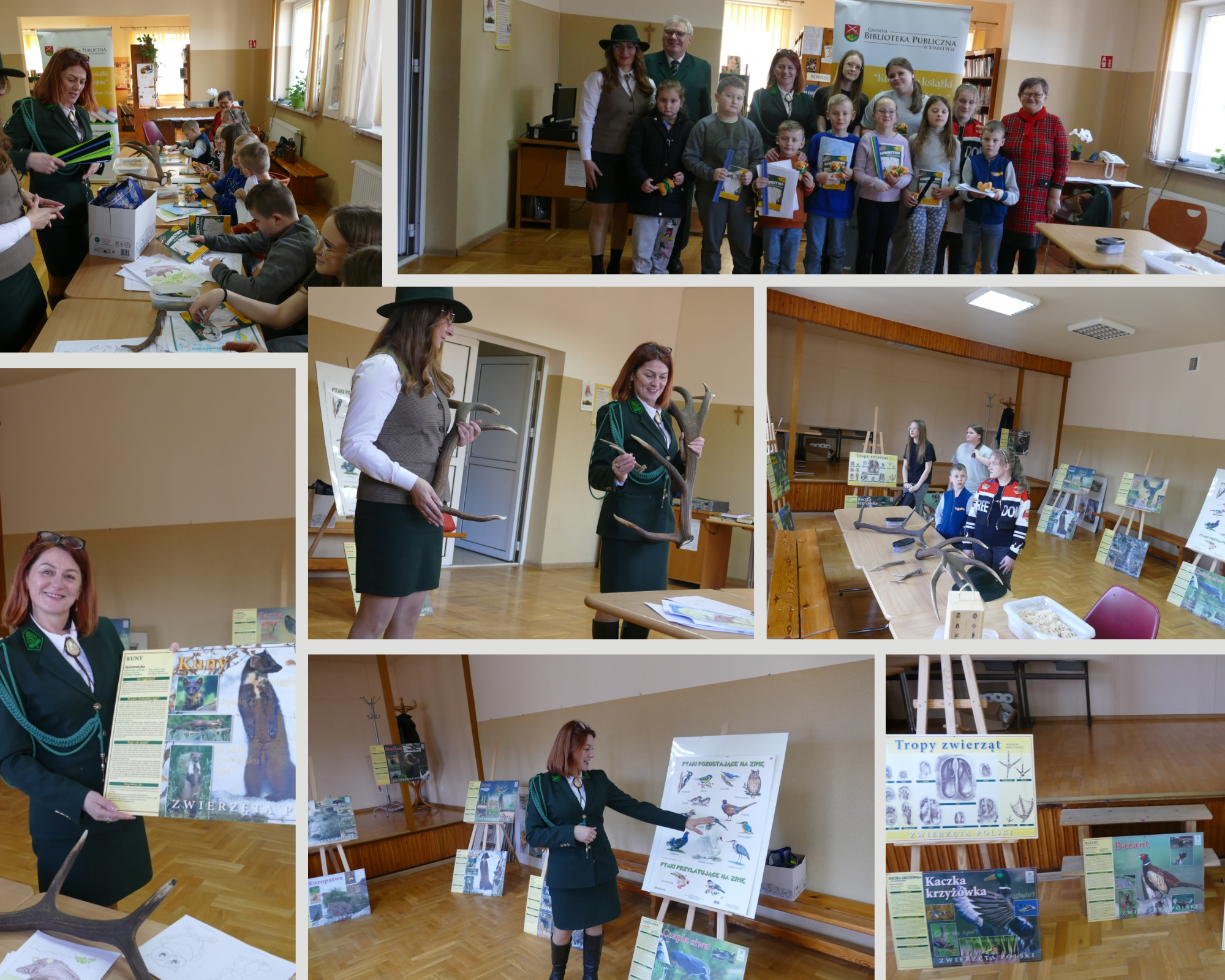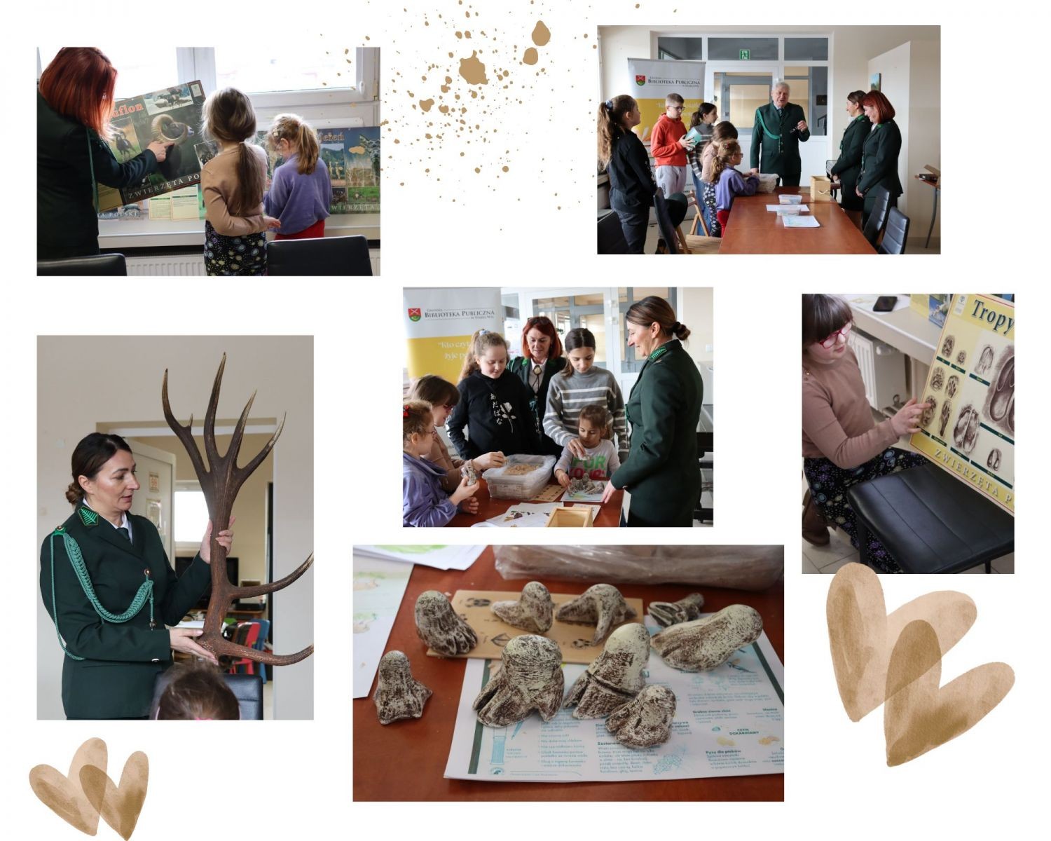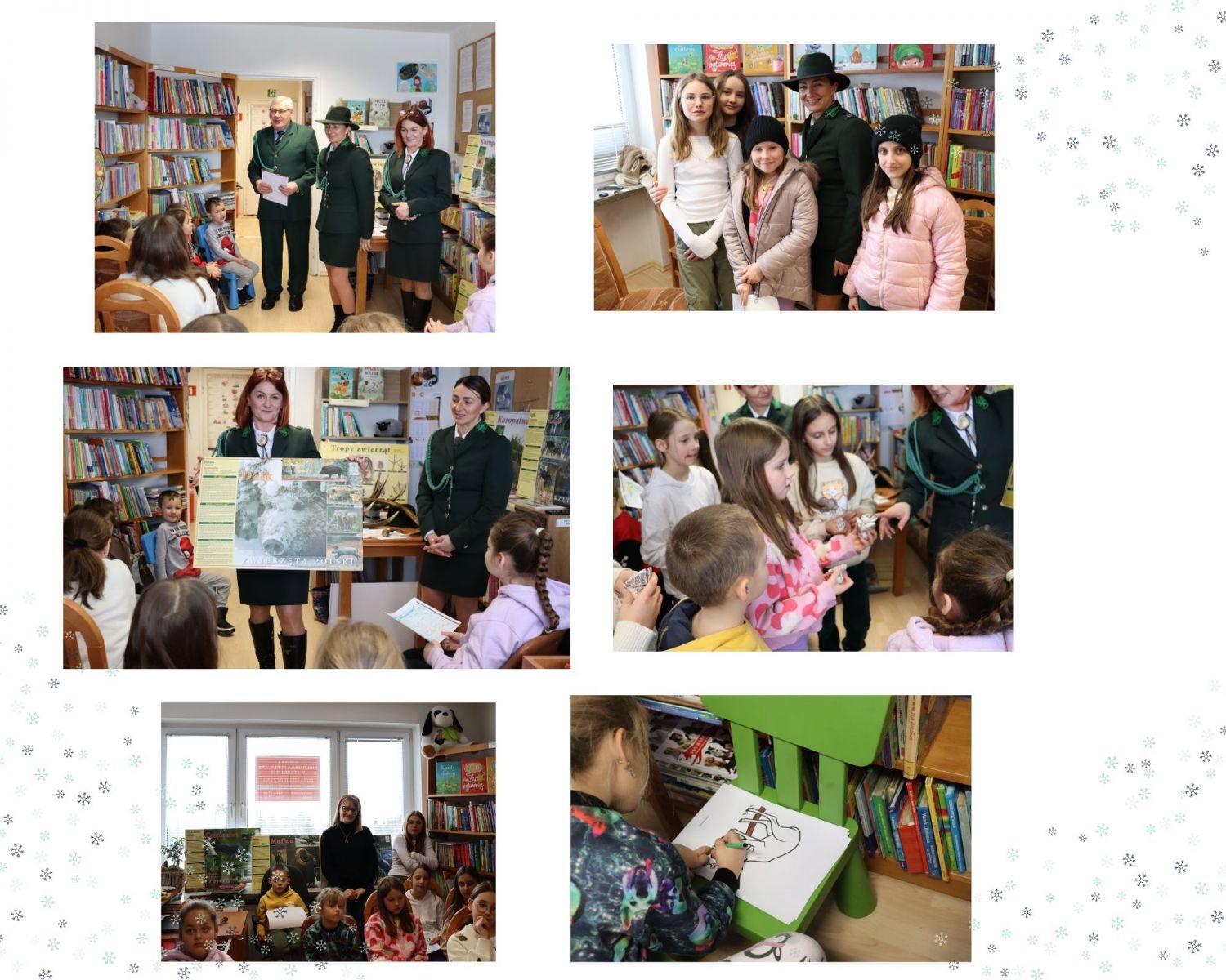 w filiach w Pisarzowej, Siekierczynie oraz Nowym Rybiu. Gośćmi były przedstawicielki kół łowieckich „Jaworz” i „Dzik”, które w przystępny i pełen pasji sposób opowiadały o życiu dzikich zwierząt zamieszkujących nasze lasy. Dzieci mogły z bliska obejrzeć poroża sarny i jelenia, poznać różnice między tymi gatunkami oraz dowiedzieć się, jak rozpoznawać tropy pozostawione na śniegu i w piasku. Nie zabrakło zagadek, ciekawostek oraz rozmów o tym, jak dbać o przyrodę zimą i dlaczego dokarmianie zwierząt powinno odbywać się z rozwagą. Spotkania miały charakter interaktywny – najmłodsi chętnie zadawali pytania i dzielili się własnymi obserwacjami z leśnych spacerów.