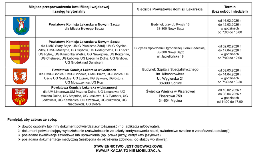 W 2026 roku kwalifikacja wojskowa odbędzie się w całym kraju w okresie od 2 lutego do 30 kwietnia 2026 r.