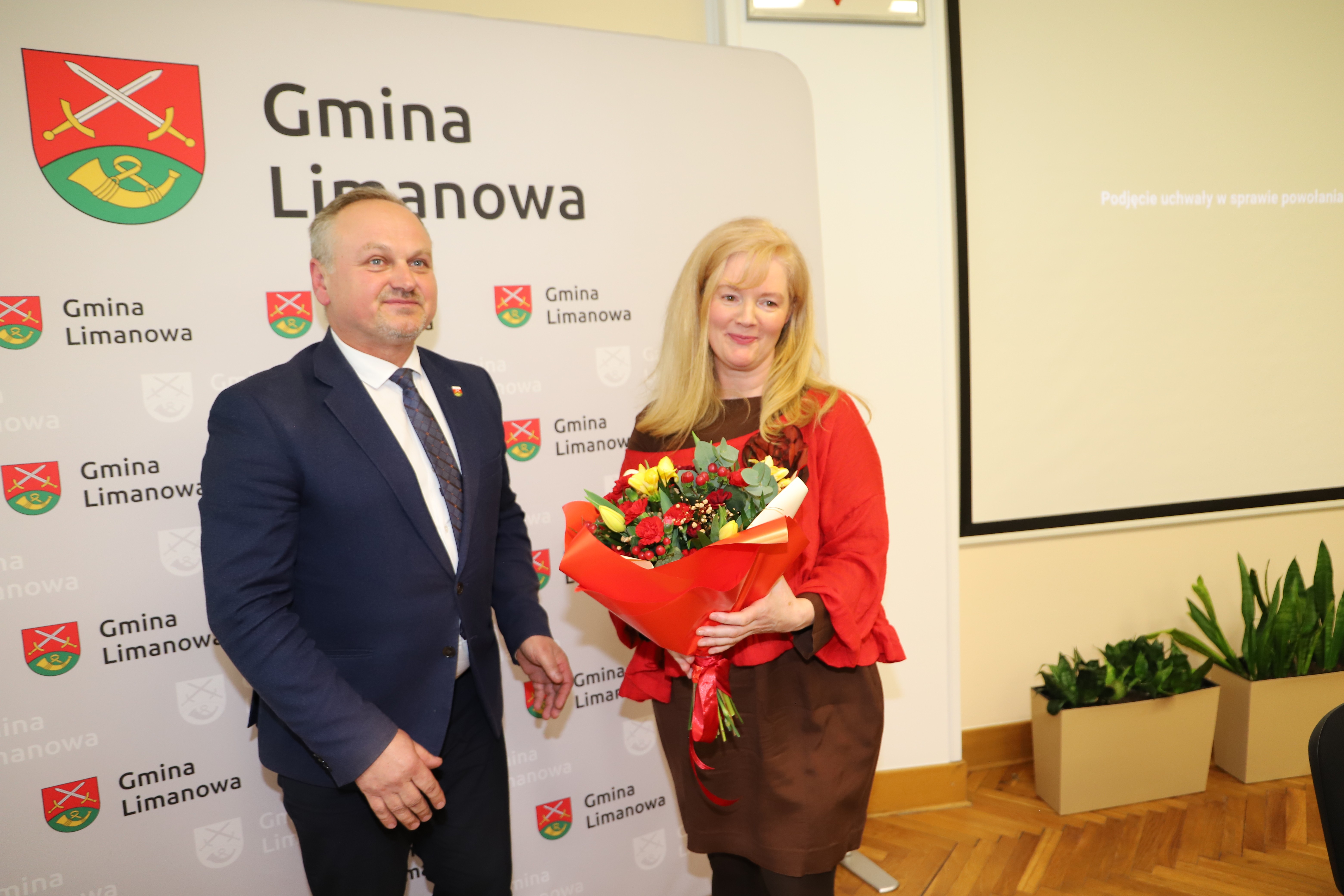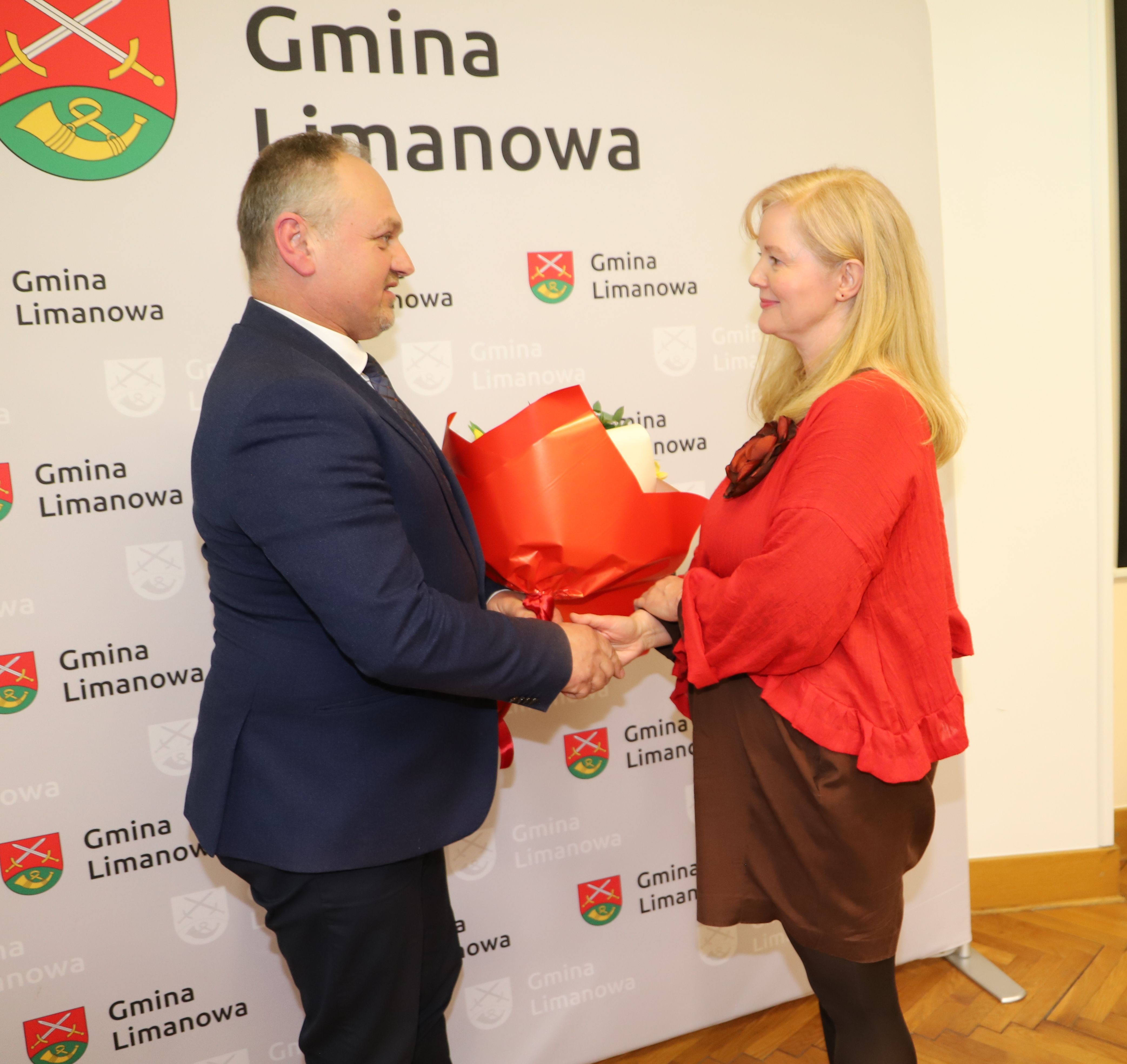 Gratulacje oraz życzenia nowo powołanej Skarbnik złożył Wójt Gminy Limanowa w imieniu wszystkich radnych, sołtysów oraz pracowników Urzędu Gminy.