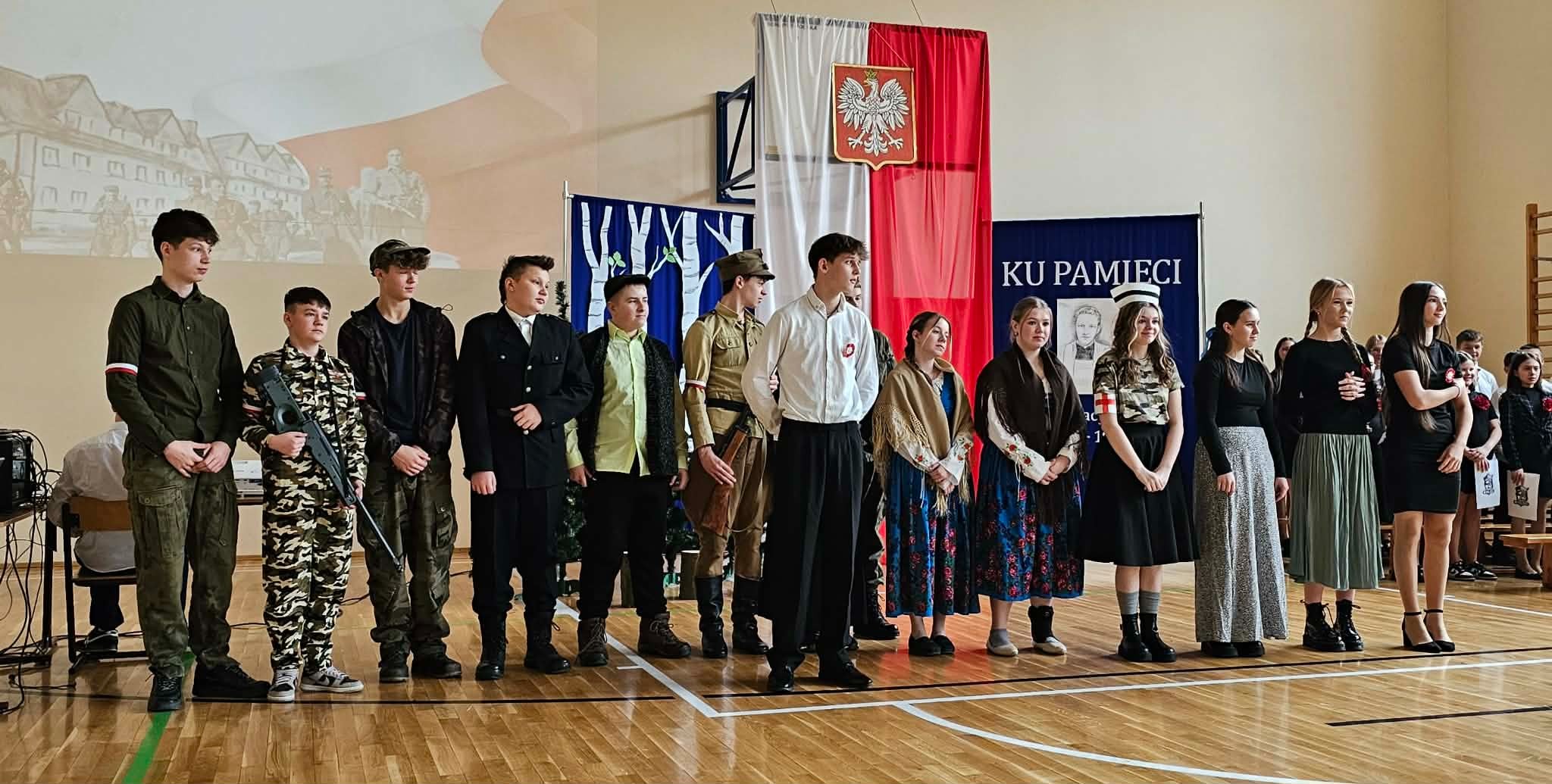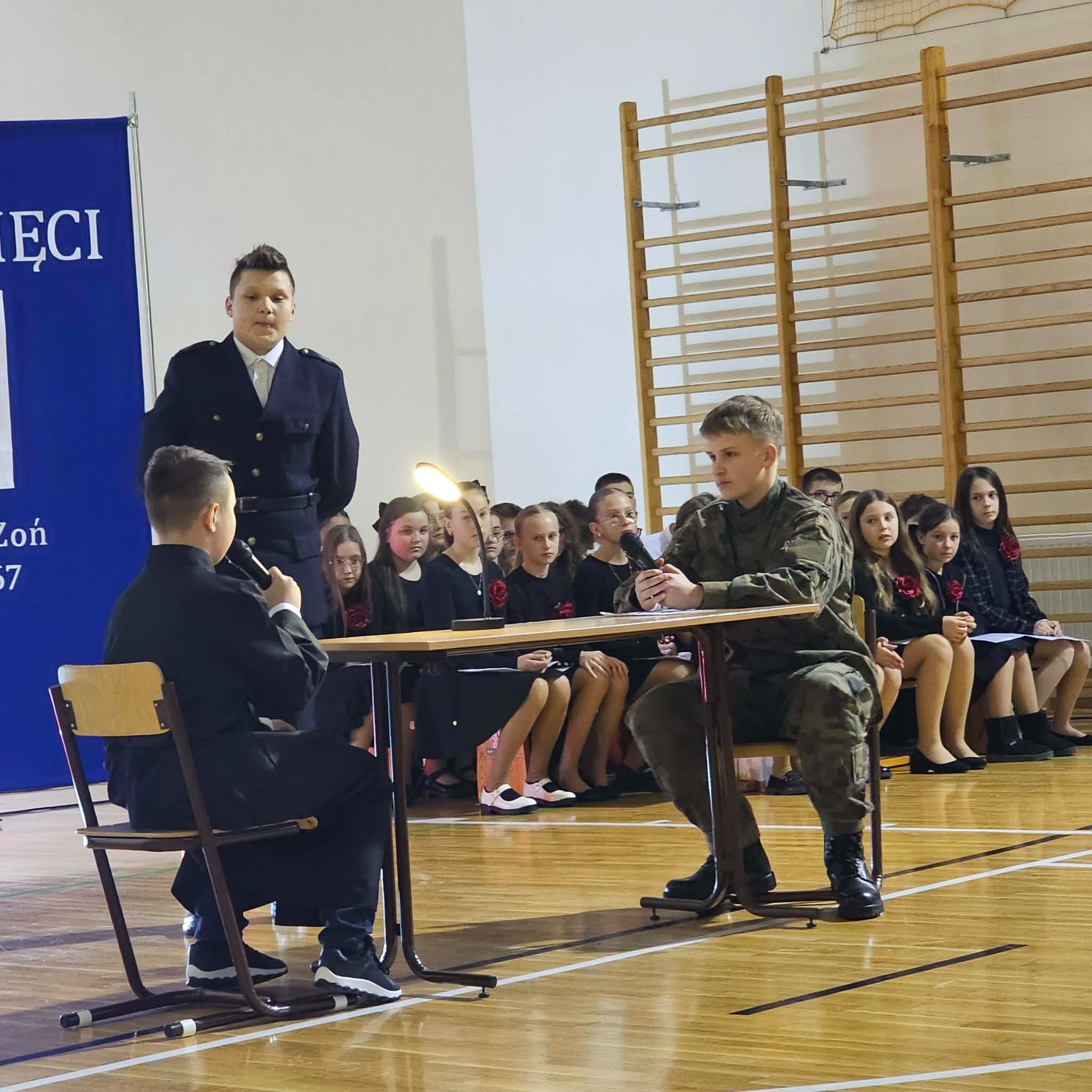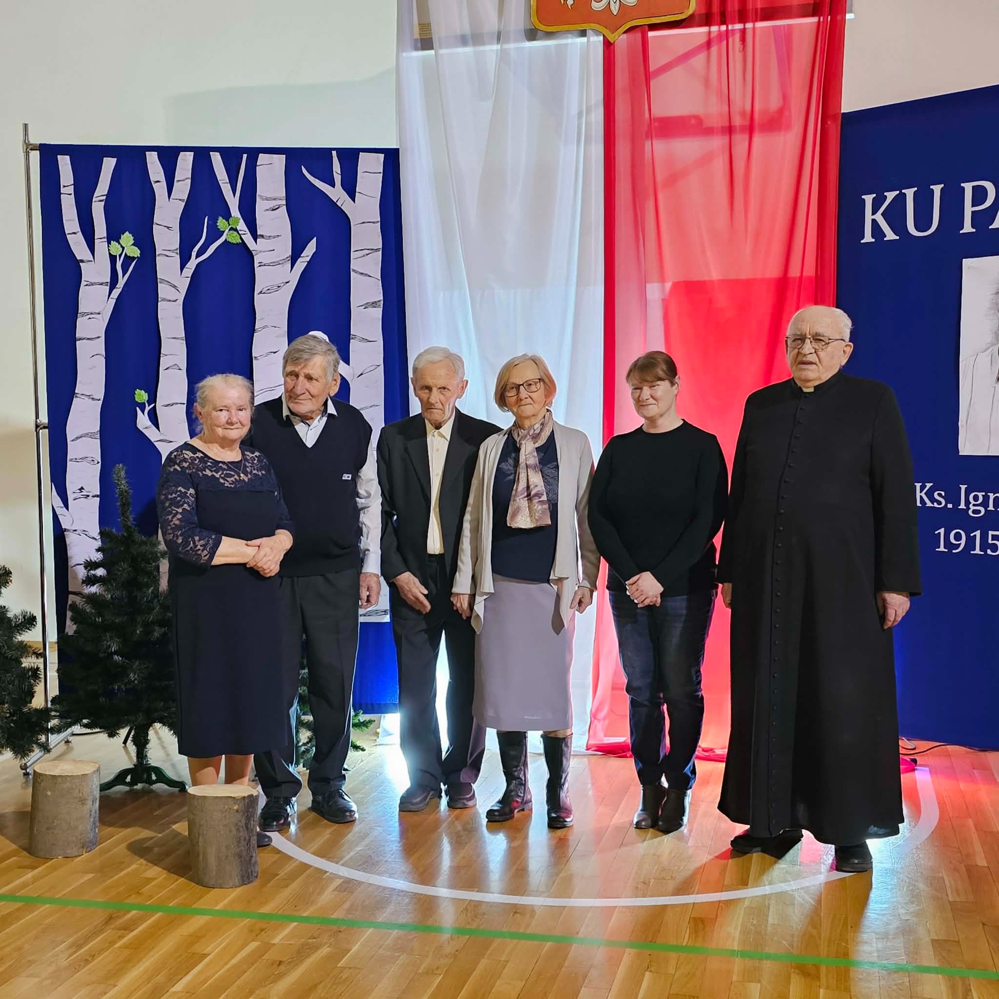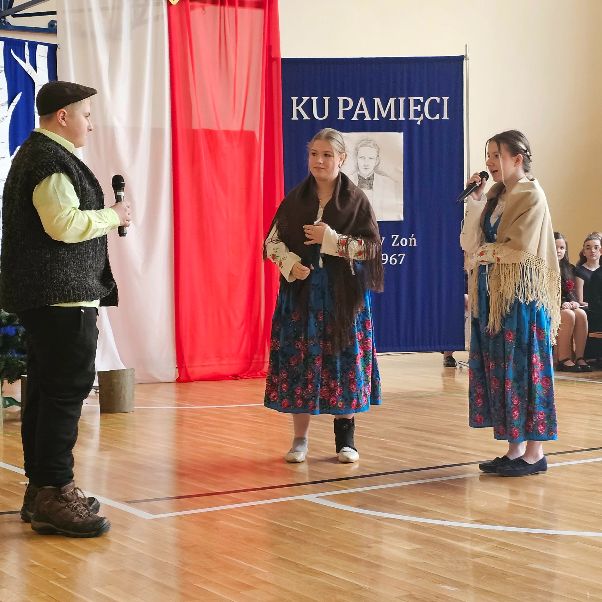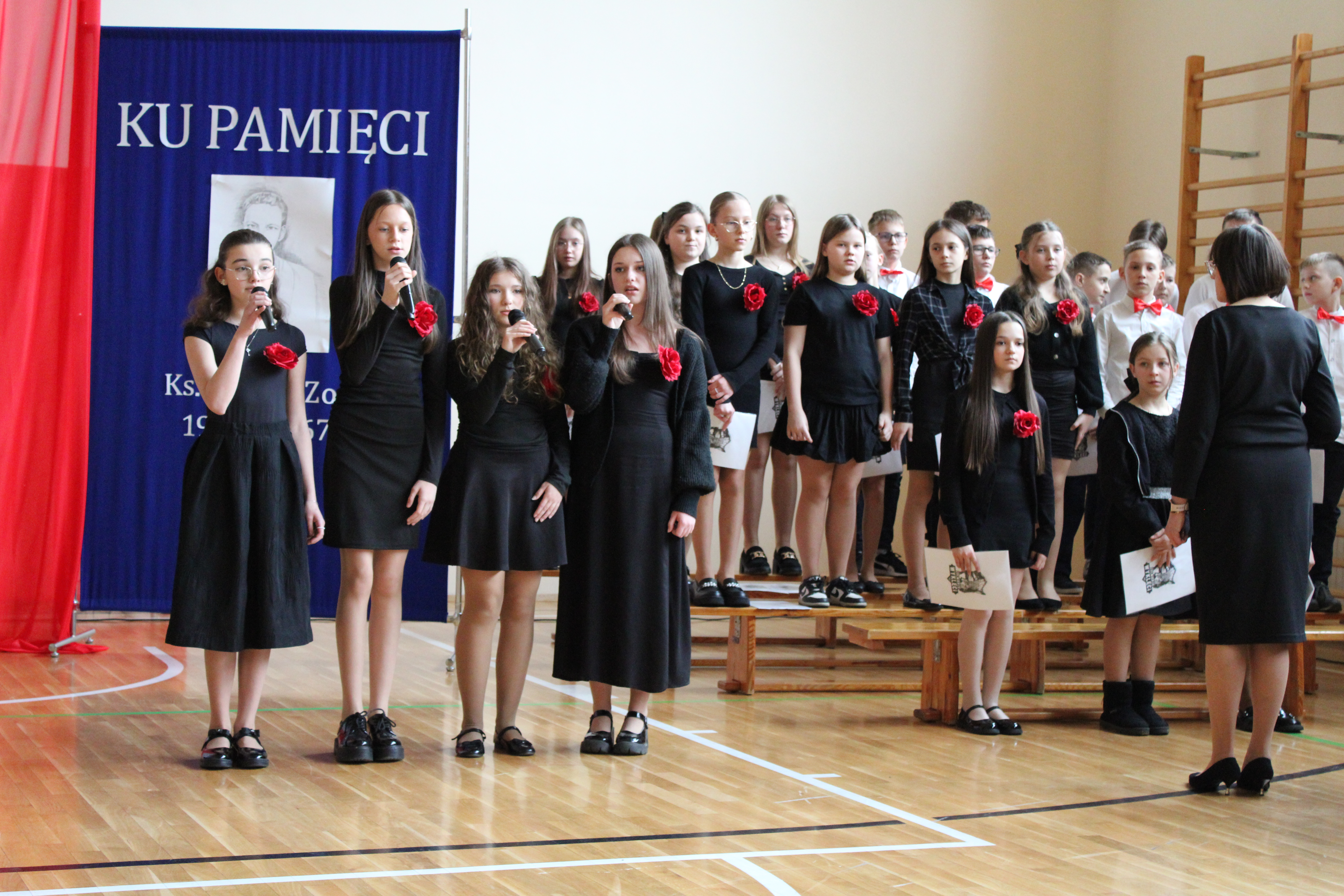 Uroczystość rozpoczęła się od powitania przez dyrektor Natalię Kordeczkę wszystkich zaproszonych gości, a w szczególności najbliższej rodziny ks. Ignacego Zonia. Po wspólnym odśpiewaniu hymnu państwowego uczniowie klasy ósmej i siódmej przedstawili program artystyczny, który składał się ze scenek historycznych związanych z życiem ks. Ignacego. Chór szkolny pod kierunkiem Joanny Dutki wzbogacił przedstawienie pieśniami nawiązującymi do walki o wolność i niepodległość Polski jaką prowadzili Żołnierze Wyklęci. Scenografia, odpowiednio dobrane pieśni patriotyczne oraz stroje historyczne przygotowane przez uczniów i ich rodziców pozwoliły widzom jeszcze bardziej wczuć się w atmosferę czasu głębokich przemian politycznych związanych z narzuceniem Polakom systemu komunistycznego.