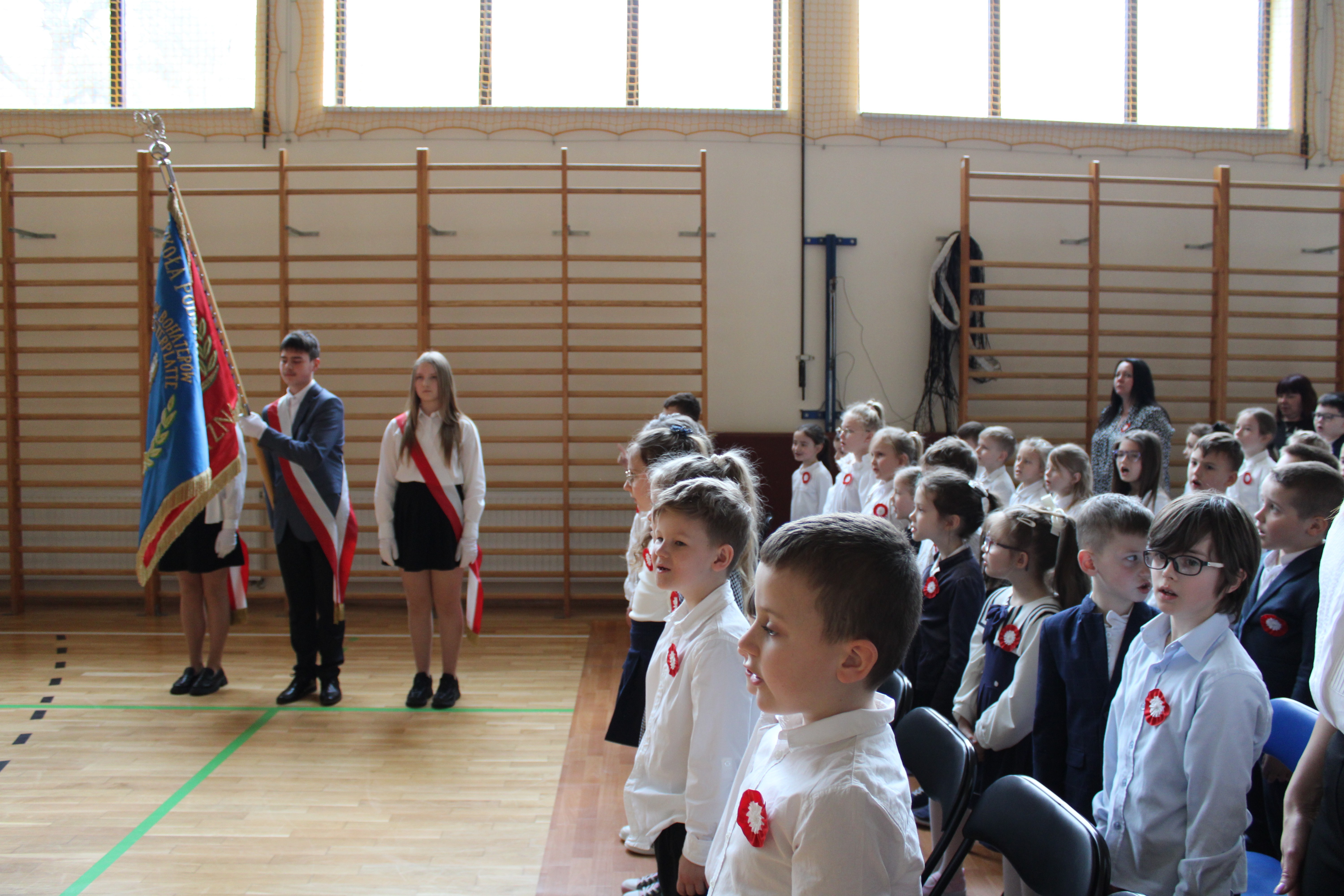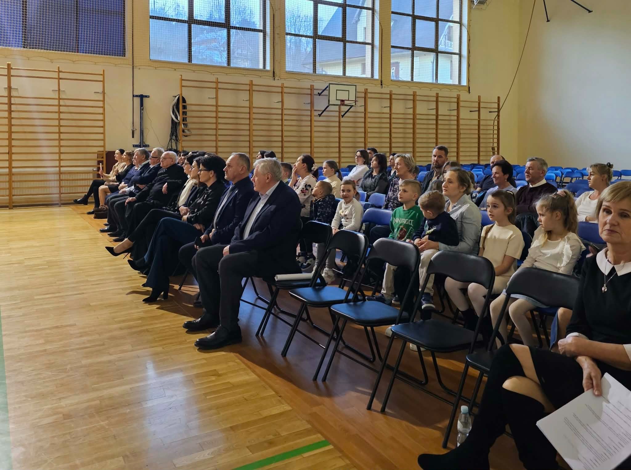 wieczornica patriotyczna. Wzięli w niej udział: wójt Gminy Limanowa - Jan Skrzekut, były proboszcz tutejszej parafii - ksiądz prałat Marian Tyrka, radny Gminy Limanowa - Marian Pałka, dyrektor Gminnej Biblioteki Publicznej w Starej Wsi - Jacenty Musiał, sołtys Starej Wsi a jednocześnie przewodnicząca Rady Rodziców - Magdalena Krzyżak, dyrekcja szkoły, nauczyciele, zaproszeni goście, rodzice i uczniowie.