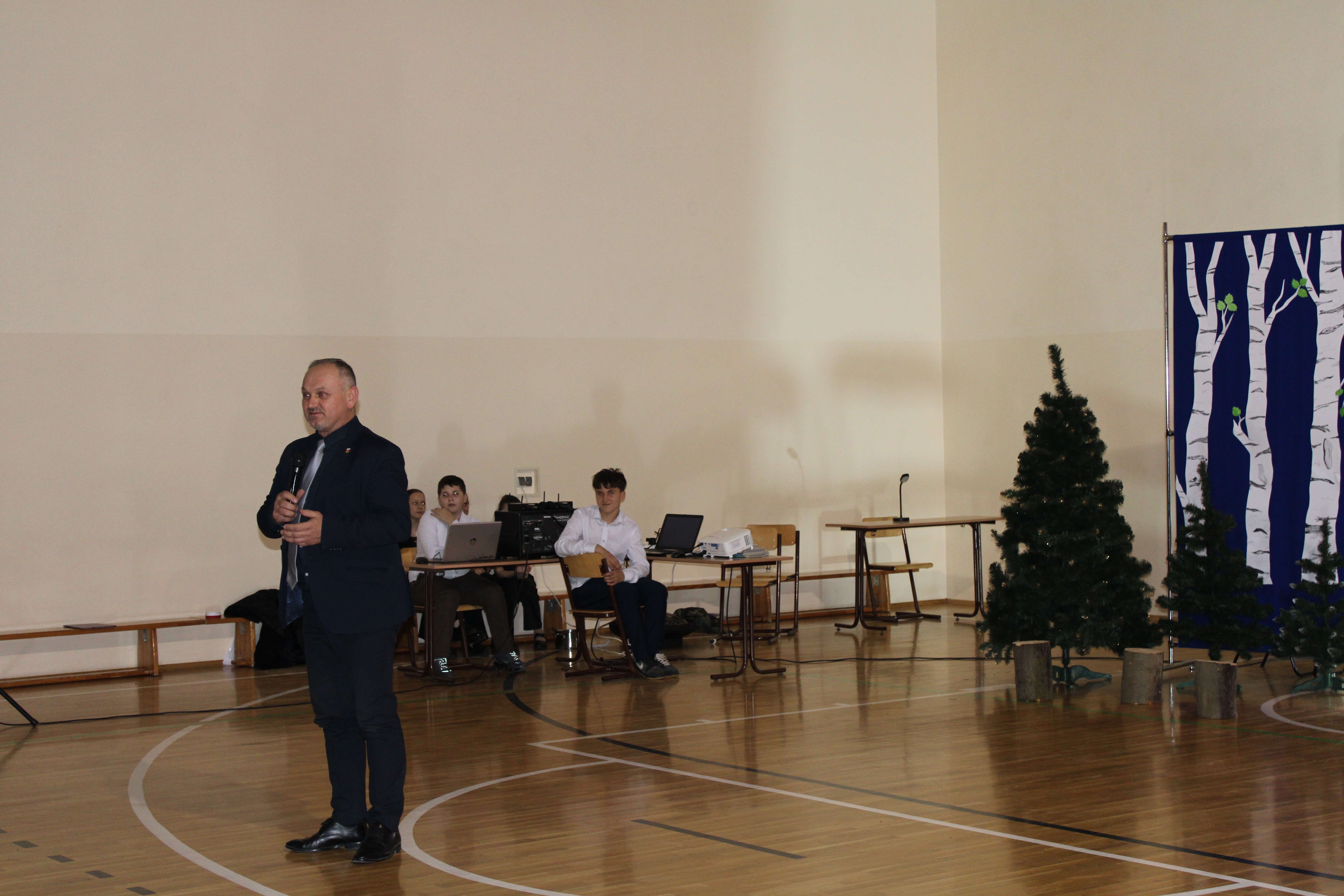 W szkolnej sali gimnastycznej