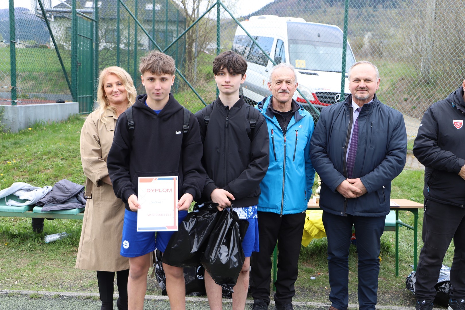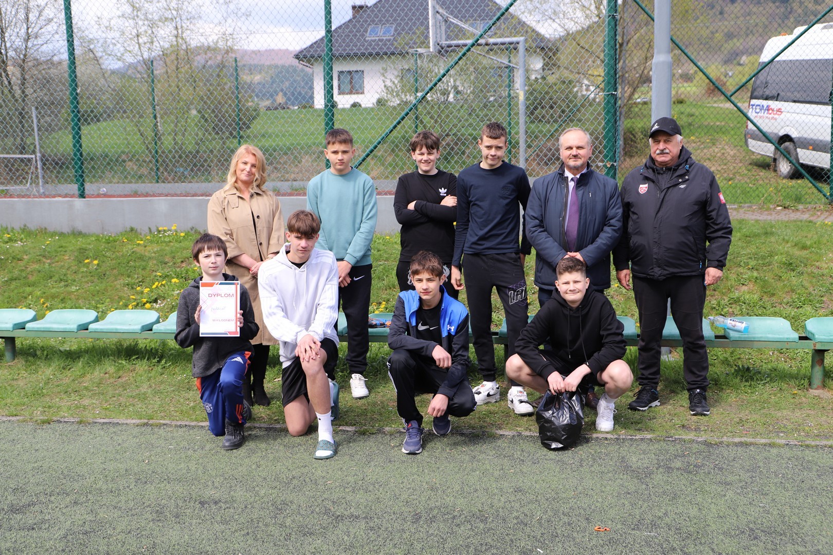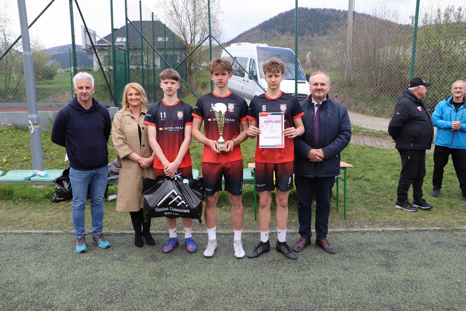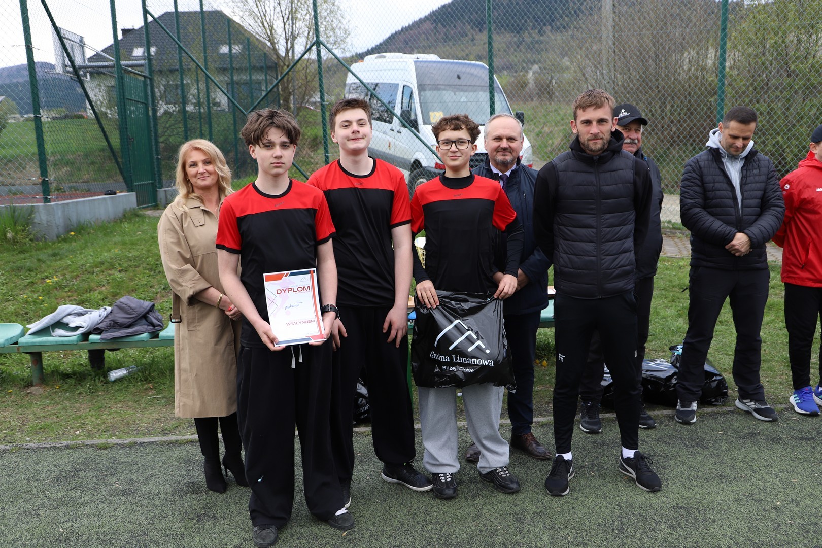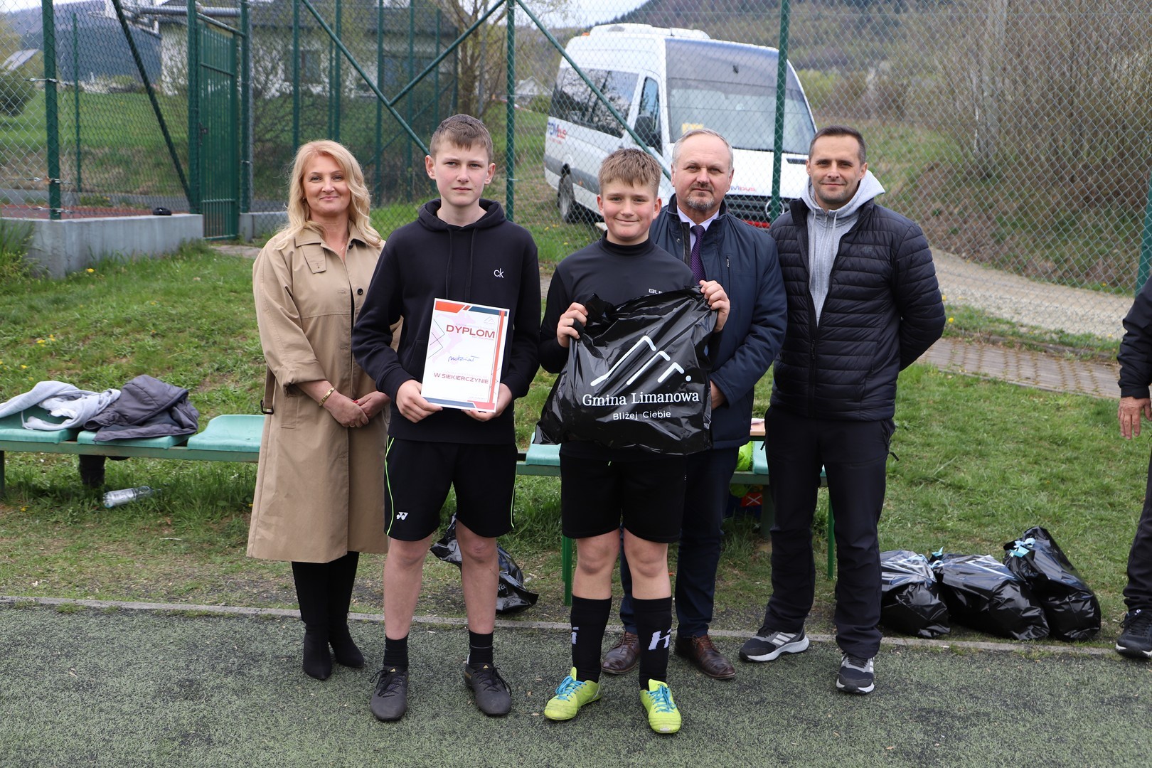 Wręczenia dyplomów oraz nagród uczestnikom rozgrywek piłkarskich dokonali, Jan Skrzekut Wójt Gminy Limanowa i dyrektor Szkoły Podstawowej w Pisarzowej Renata Długosz.