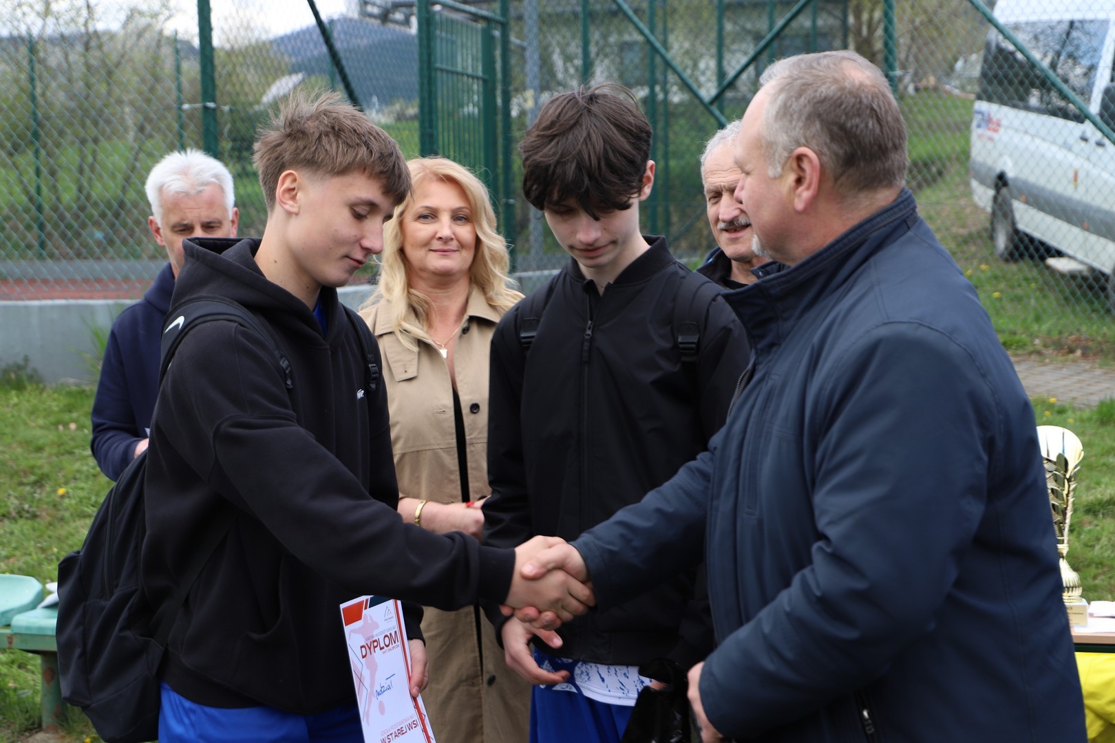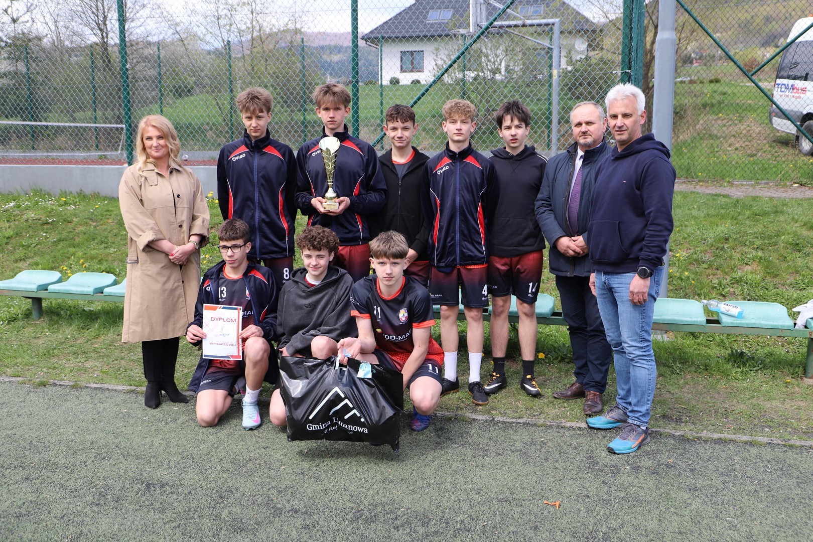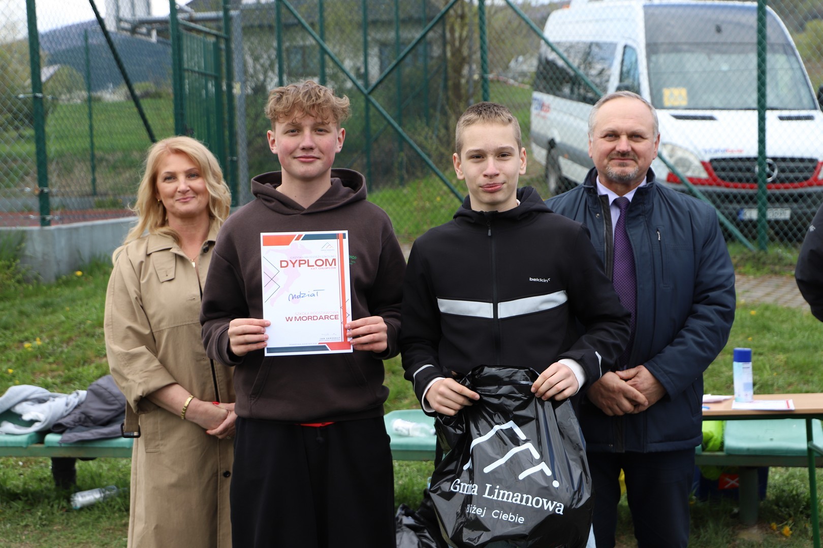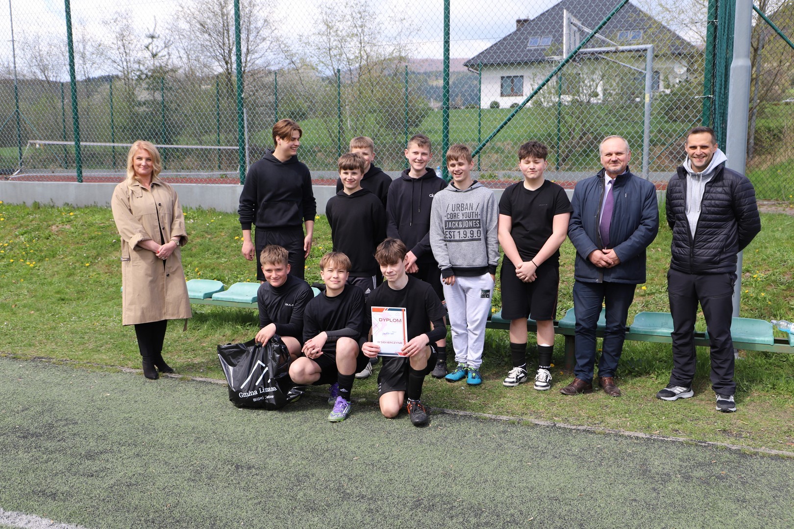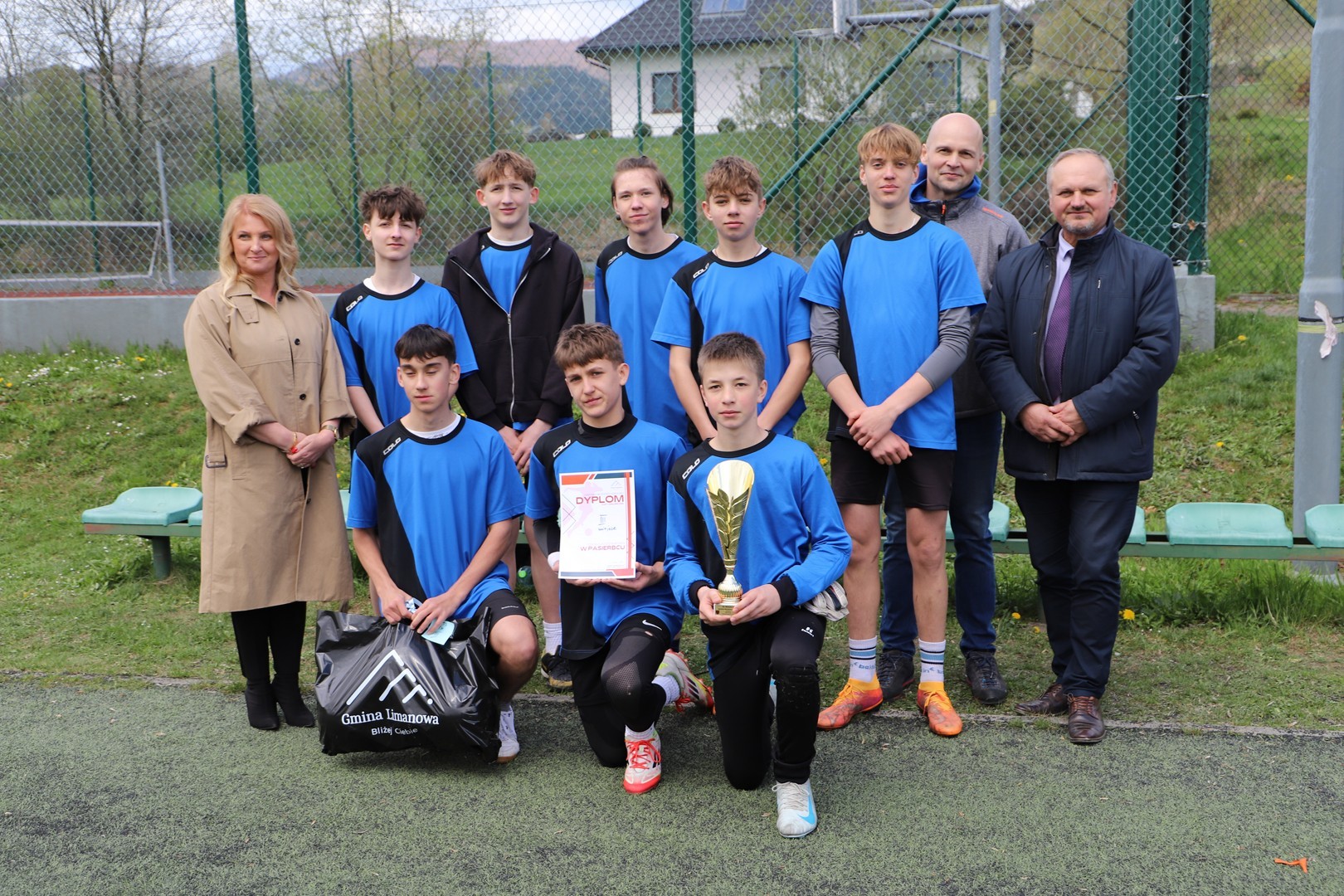 Wręczenia dyplomów oraz nagród uczestnikom rozgrywek piłkarskich dokonali, Jan Skrzekut Wójt Gminy Limanowa i dyrektor Szkoły Podstawowej w Pisarzowej Renata Długosz.