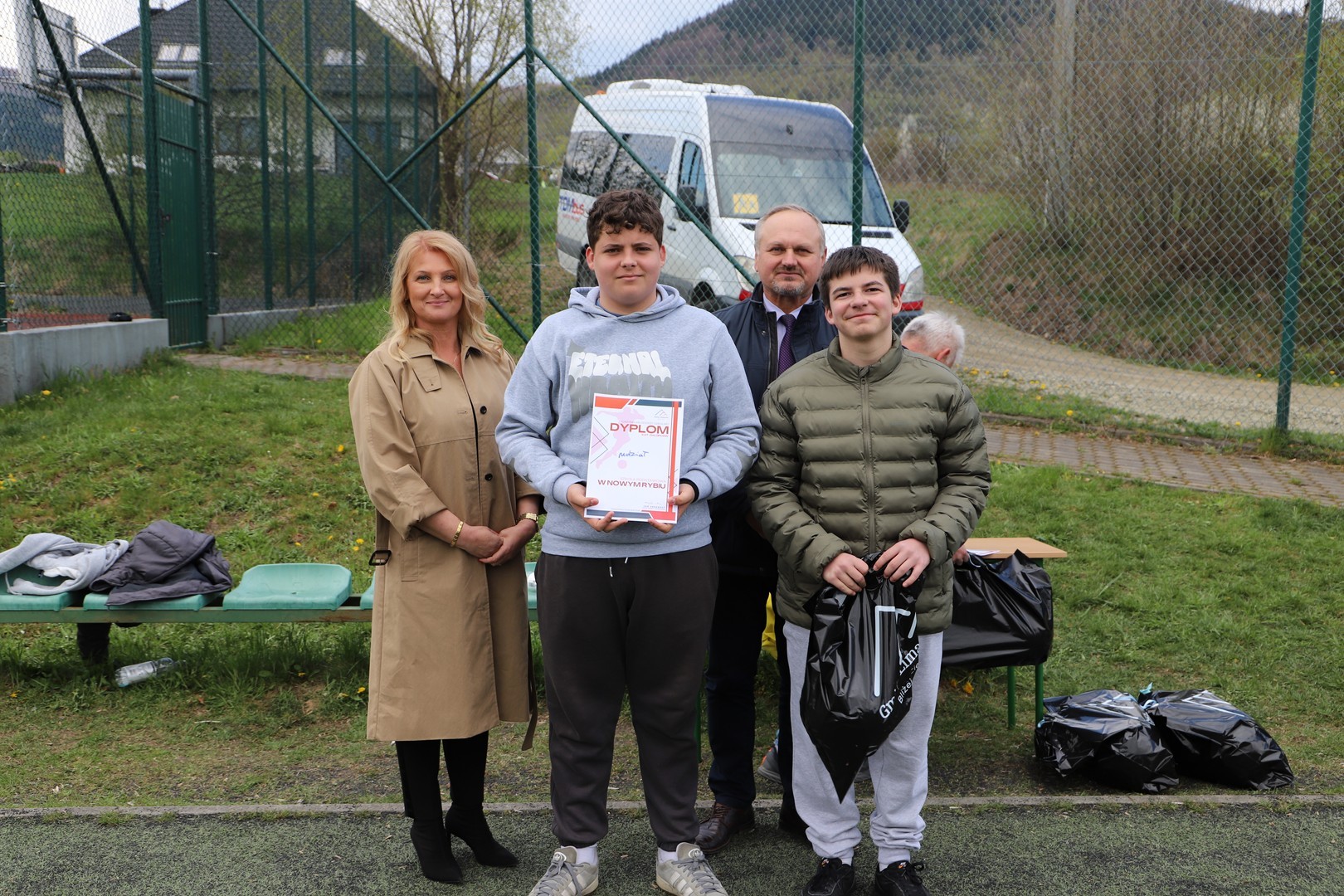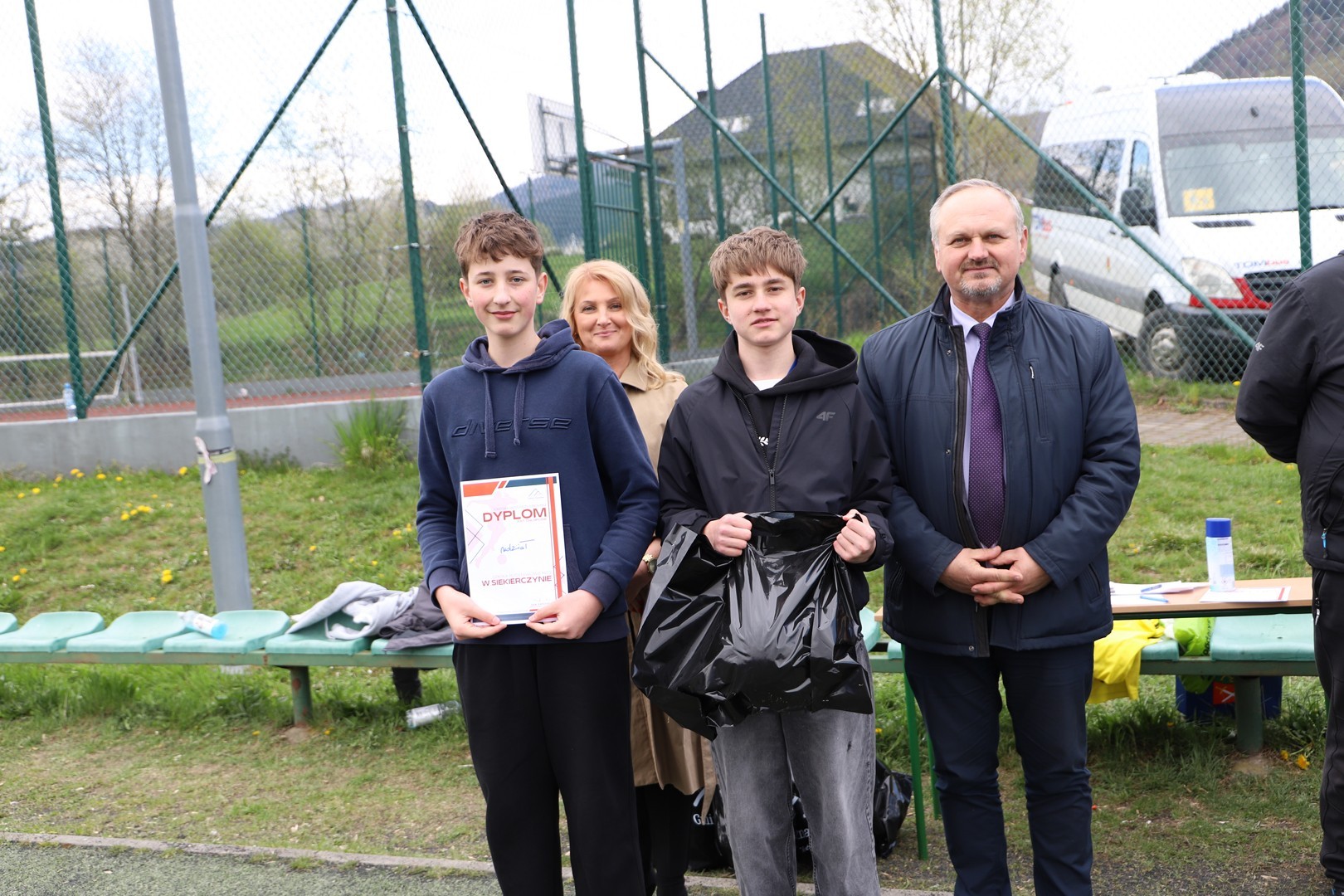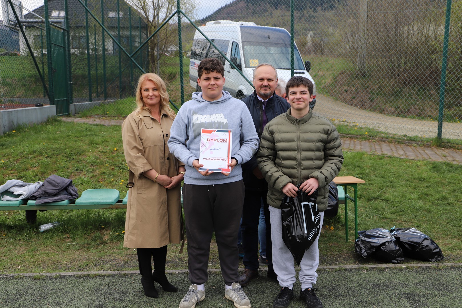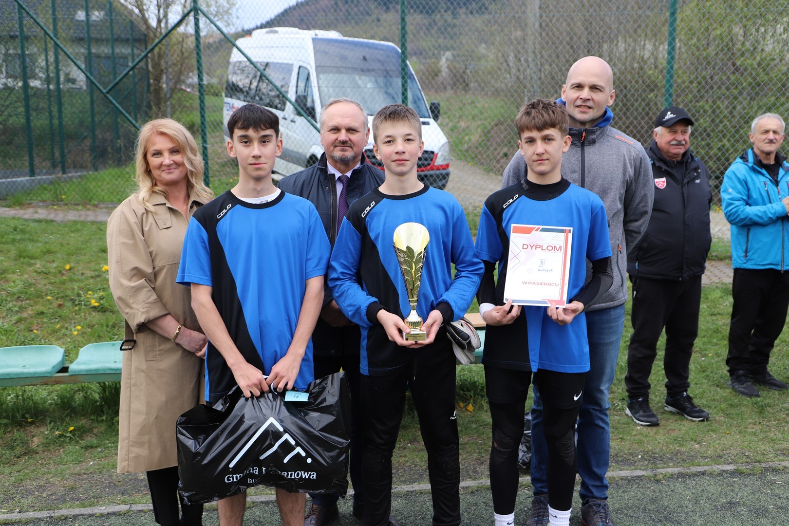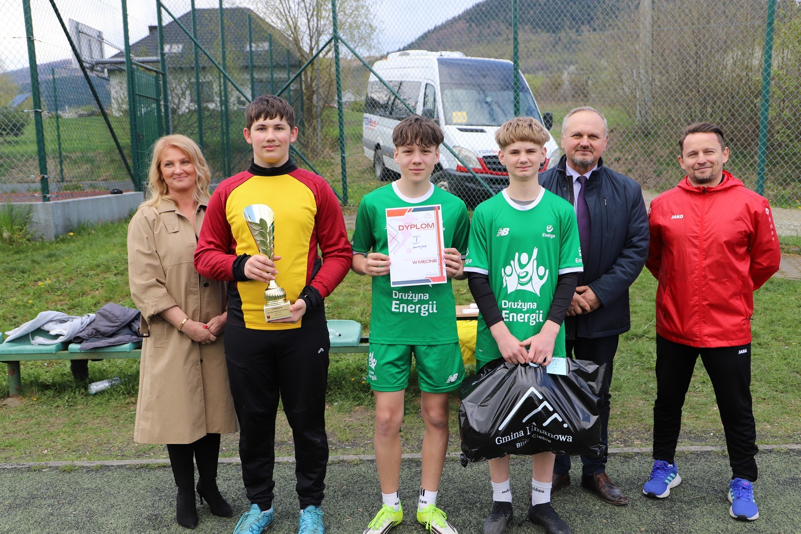 Wręczenia dyplomów oraz nagród uczestnikom rozgrywek piłkarskich dokonali, Jan Skrzekut Wójt Gminy Limanowa i dyrektor Szkoły Podstawowej w Pisarzowej Renata Długosz.