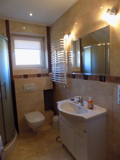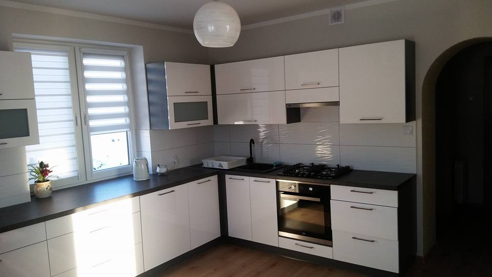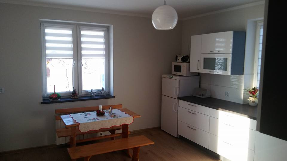 - kuchnię z pełnym wyposażeniem (lodówka, zmywarka, kuchenka gazowa, mikrofalowa, sztućce, naczynia, czajnik elektryczny)