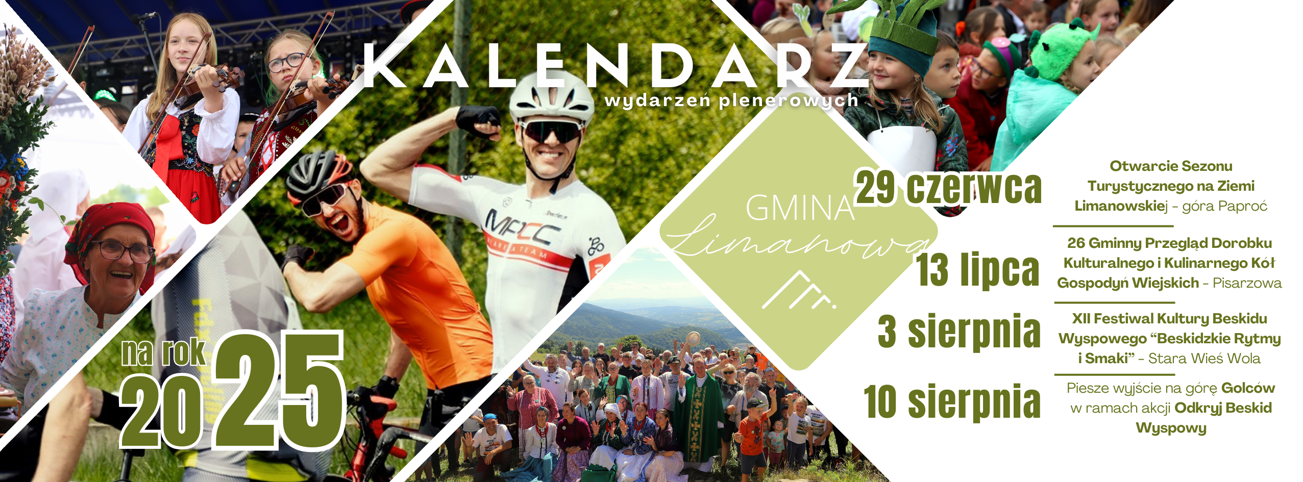 Niezależnie od tego, czy lubisz aktywny wypoczynek, muzykę na żywo, warsztaty artystyczne czy rekonstrukcje historyczne – każdy znajdzie coś dla siebie! Śledź nasze wydarzenia i dołącz do wspólnej zabawy! Więcej informacji na bieżąco będziemy Państwu serwować na stronie gminy Limanowa oraz w mediach społecznościowych.