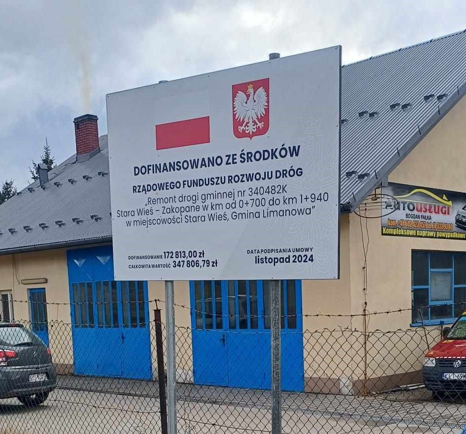 „Remont drogi gminnej nr 340482K Stara Wieś – Zakopane w km od 0+700 do km 1+940 w miejscowości Stara Wieś, Gmina Limanowa”.