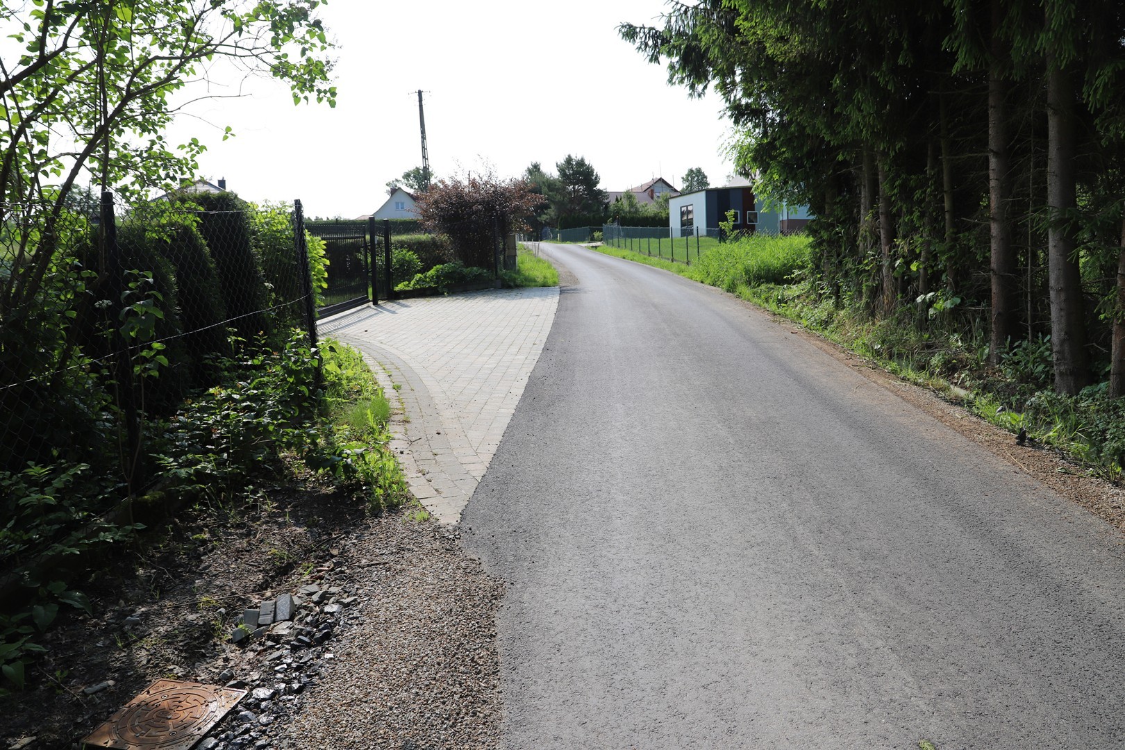 W wyniku realizacji zadania na w/w drodze na długości 1,365 km wykonano nową nawierzchnię bitumiczną wraz z wykonaniem nowych poboczy i czyszczeniem zamulonych rowów.