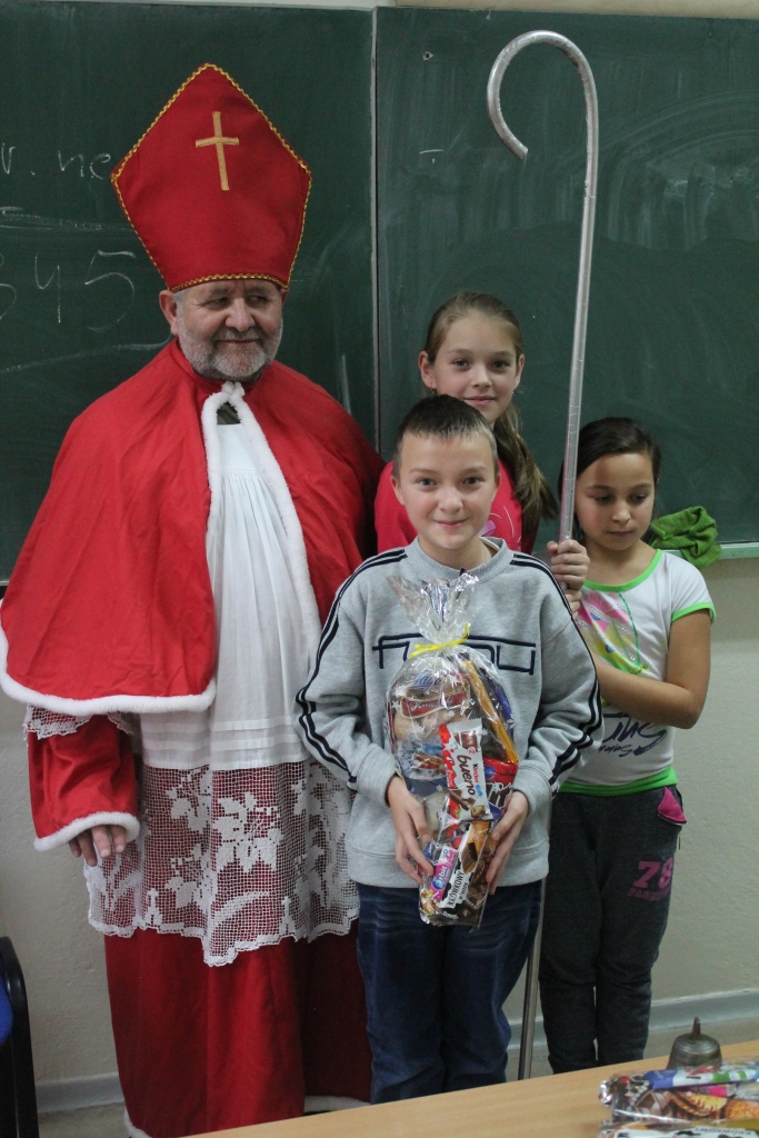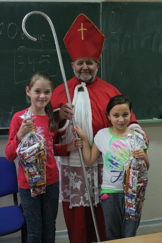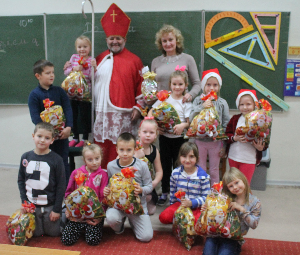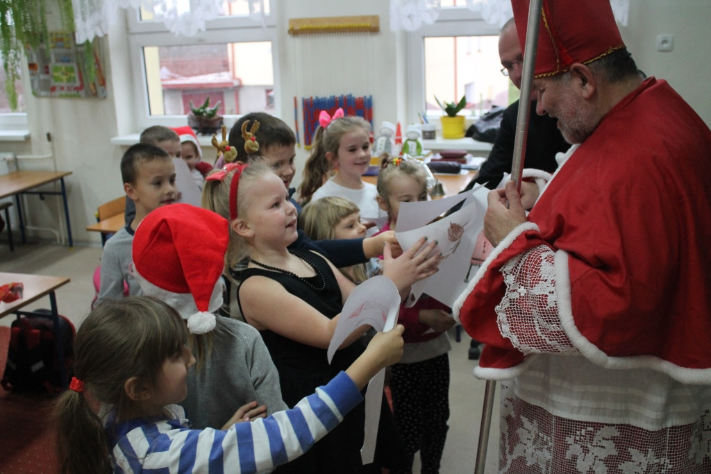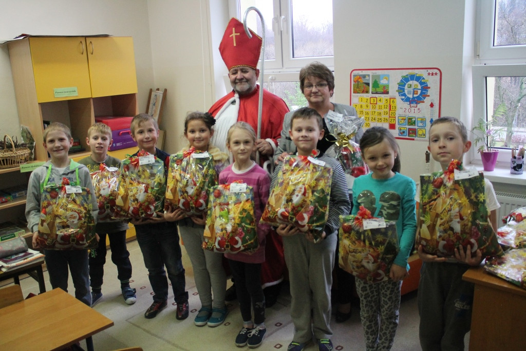 Święty Mikołaj, w stroju biskupa i z autentyczną brodą, co zostało stwierdzone przez dzieci z oddziału przedszkolnego, jak zawsze zjawił się niespodziewanie. W asyście pomocników wędrował od klasy do klasy, opowiadał swoją historię i rozdawał prezenty. W ich obfitości miał udział Sklep Spożywczo-Przemysłowy Stanisława Józkowicza, który ufundował owoce oraz Firma Tymbark - sponsor soczków dla uczniów. Jak się okazało tym razem nikt nie dostał rózgi, a radości, wrażeniom i uśmiechom nie było końca.