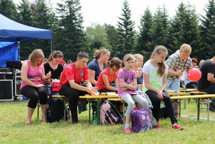 O godz. 15.00 zgromadzeni turyści oraz okoliczni mieszkańcy wzięli udział we mszy św. którą sprawowali ks. Józef Rzepka i ks. Łukasz Żurek z Parafii pw. Wszystkich Świętych w Łososinie Górnej. Następnie oficjalnie wszystkich przybyłych na szczyt Paproci przywitał Wójt Gminy Władysław Pazdan wraz z sołtysem wsi Koszary zarazem Radną Gminy – Zuzanną Kolawa. Kolejno na scenie miały miejsce prezentacje grup dziecięcych i młodzieżowych. Wystąpiły „Słoneczka” z Publicznego Przedszkola z Tymbarku, zespoły "Pikolo", "Super Five" i grupa gimnastyczna z ZSS n4 w Limanowej, dla najmłodszych był także pokaz magii, malowanie twarzy, bezpłatne urządzenia rekreacyjne – euro bungee, trampolina, zamek dmuchany, żyroskop, ścianka wspinaczkowa oraz przejażdżki konne, wata cukrowa i lody Koral. Z pokazem tanecznym zaprezentowały się także dziewczęta z Zespołu „Diverse” z ZS nr 2 w Starej Wsi, a po nich z tej samej szkoły wystąpił zespół wokalno-instrumentalny „Forever Young”. Najwięcej emocji wzbudziło losowanie nagród podczas loterii - do szczęśliwców trafiły gminne gadżety, piłki i torby sportowe, słuchawki oraz tablety.