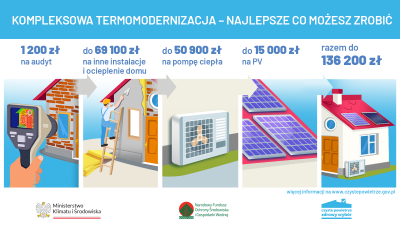 CZYSTE POWIETRZE oraz uzyskania pomocy przy wypełnianiu wniosków o dofinansowanie m.in. na zakup i montaż instalacji centralnego ogrzewania i ciepłej wody (w tym: kotły na paliwo stałe biomasę, kotły gazowe, kondensacyjne, olejowe, elektryczne, pompy ciepła), montaż wentylacji mechanicznej z odzyskiem ciepła, montaż fotowoltaiki. Dodatkowo dla osób wymieniających źródło ogrzewania lub posiadających już ekologiczne źródło ogrzewania (wymienione powyżej) program przewiduje możliwość skorzystania z dofinansowania do termomodernizacji budynku (w tym: na docieplenie budynku, wymianę stolarki okiennej i drzwiowej).